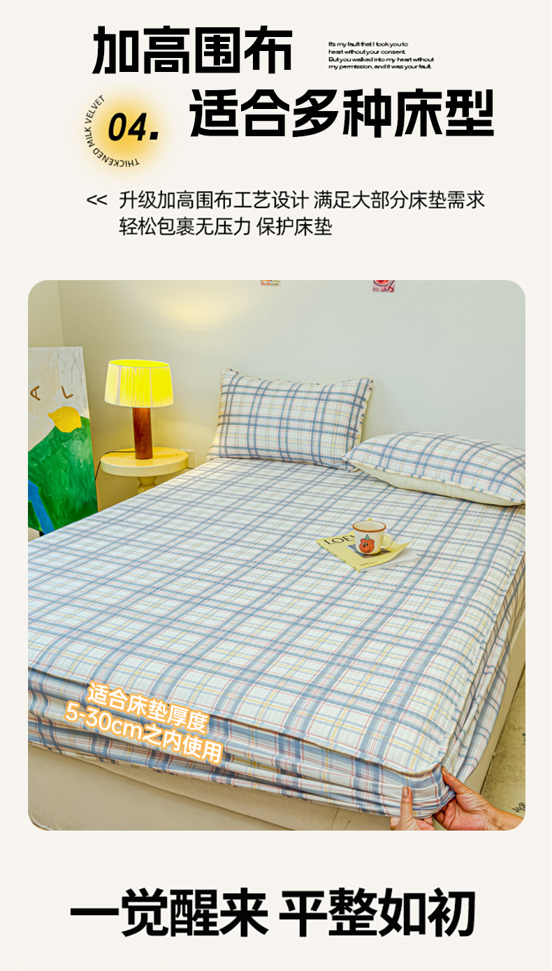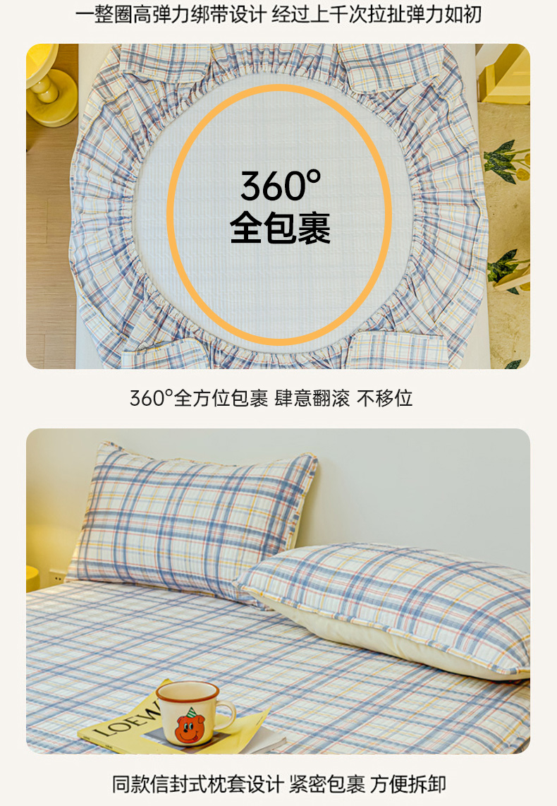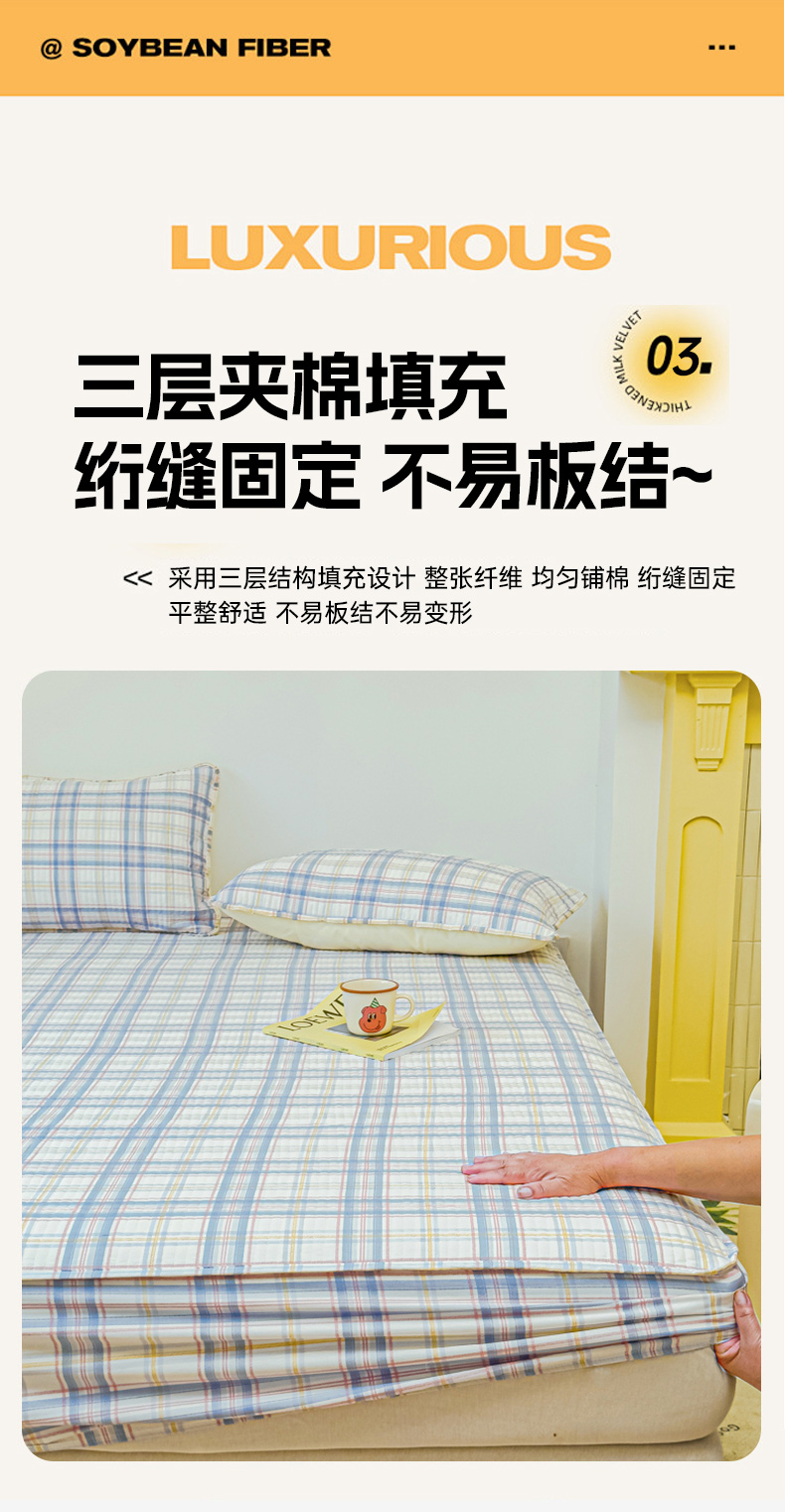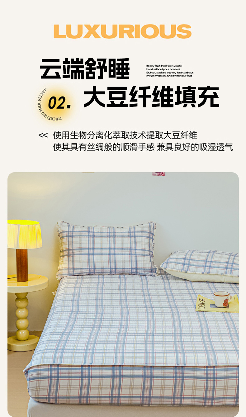• 91家纺网 家纺一手货源 找家纺 寝居阁 2024新款13372全棉纯棉大豆纤维夹棉床笠 慢调时光,慢调时光