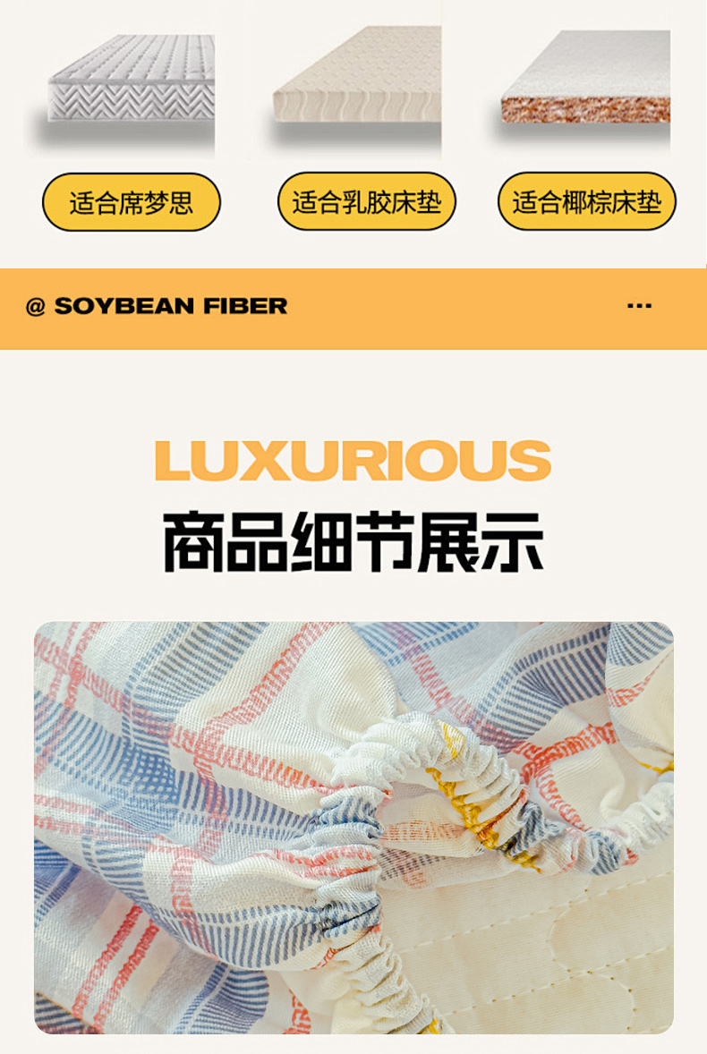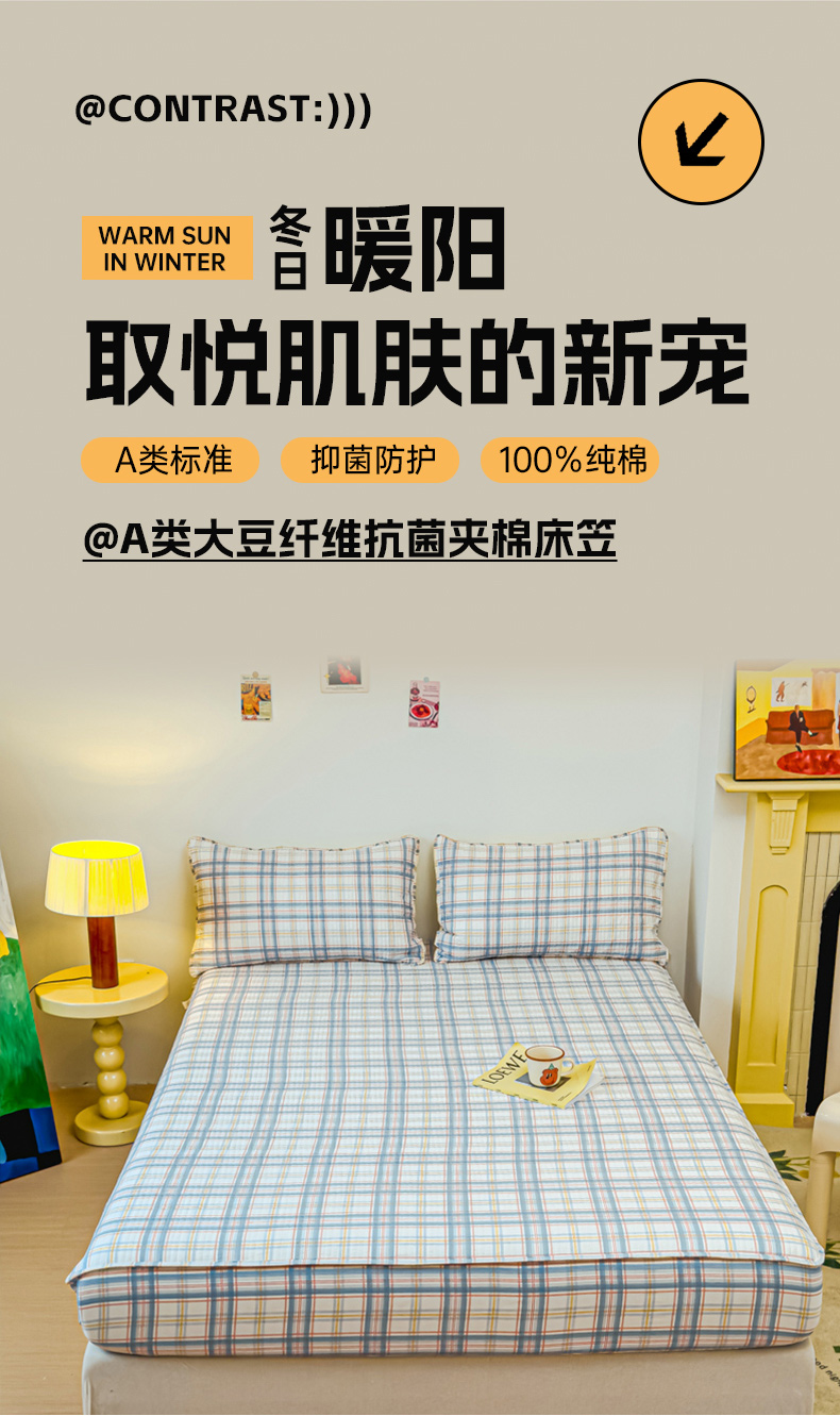 • 91家纺网 家纺一手货源 找家纺 寝居阁 2024新款13372全棉纯棉大豆纤维夹棉床笠 青春格调