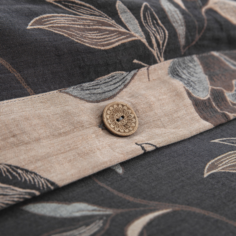 商品名称:鲁爱 2025新款全棉色织双层纱纽扣款四件套 花夕