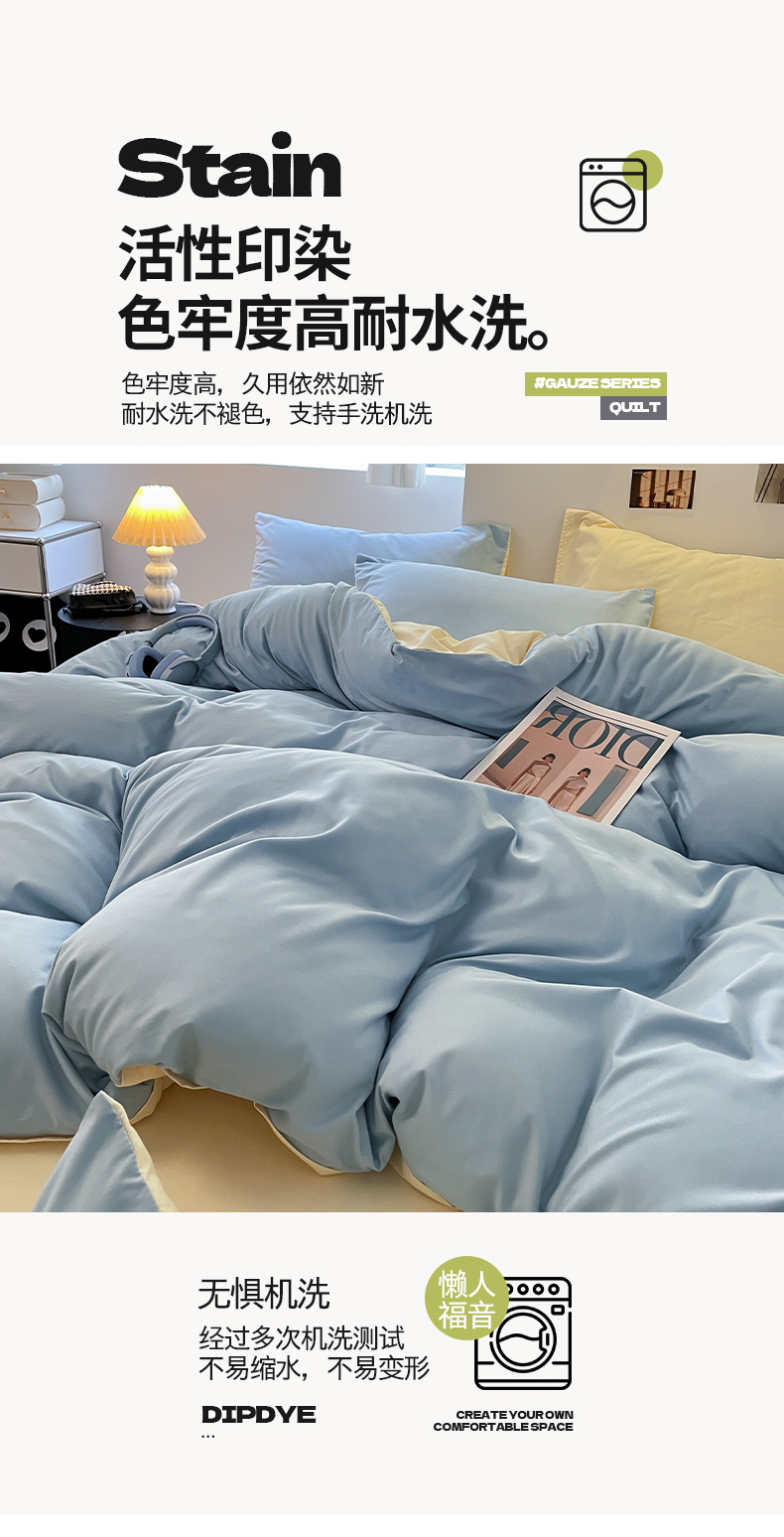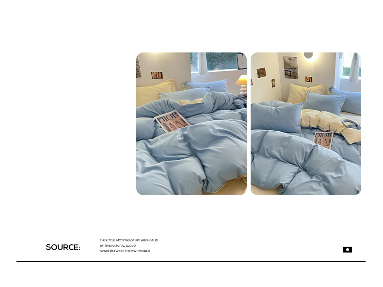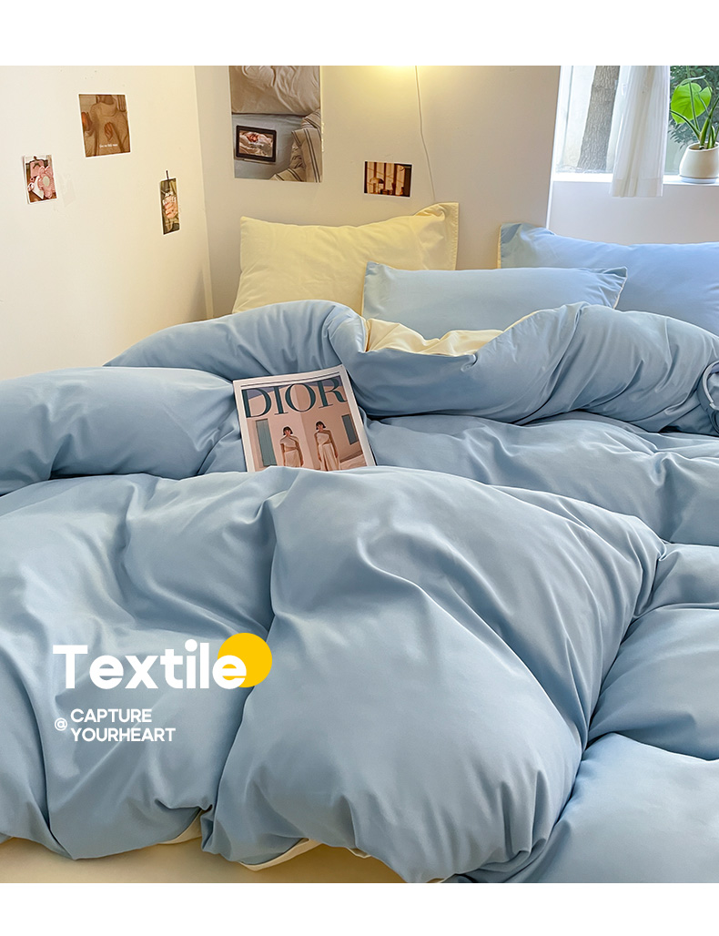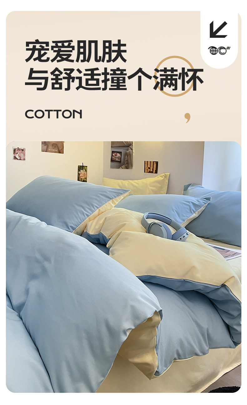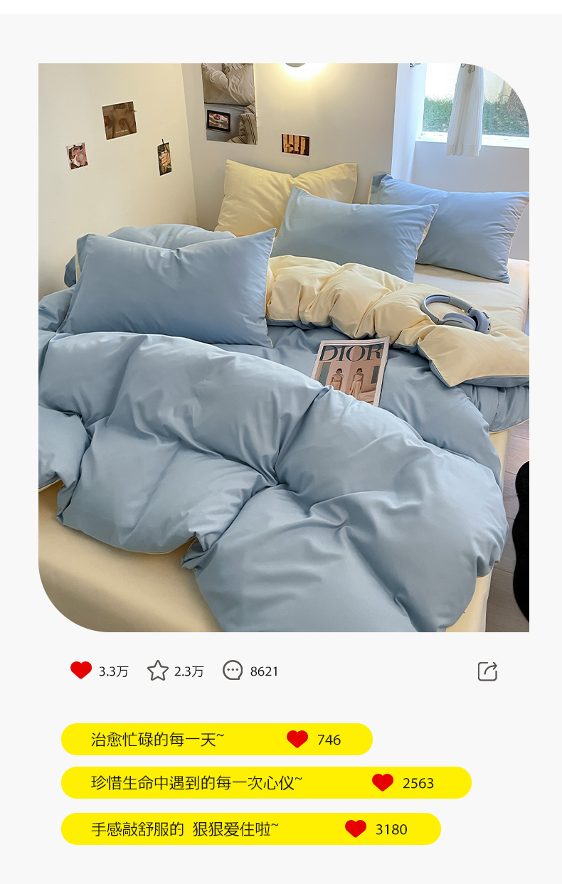 当前位置: 91家纺网 > 商品网购 > 床品套件 > 四件套 > 磨毛活性四件套 > 米粒 2024新款纯色简约双拼磨毛四件套 蓝+奶黄