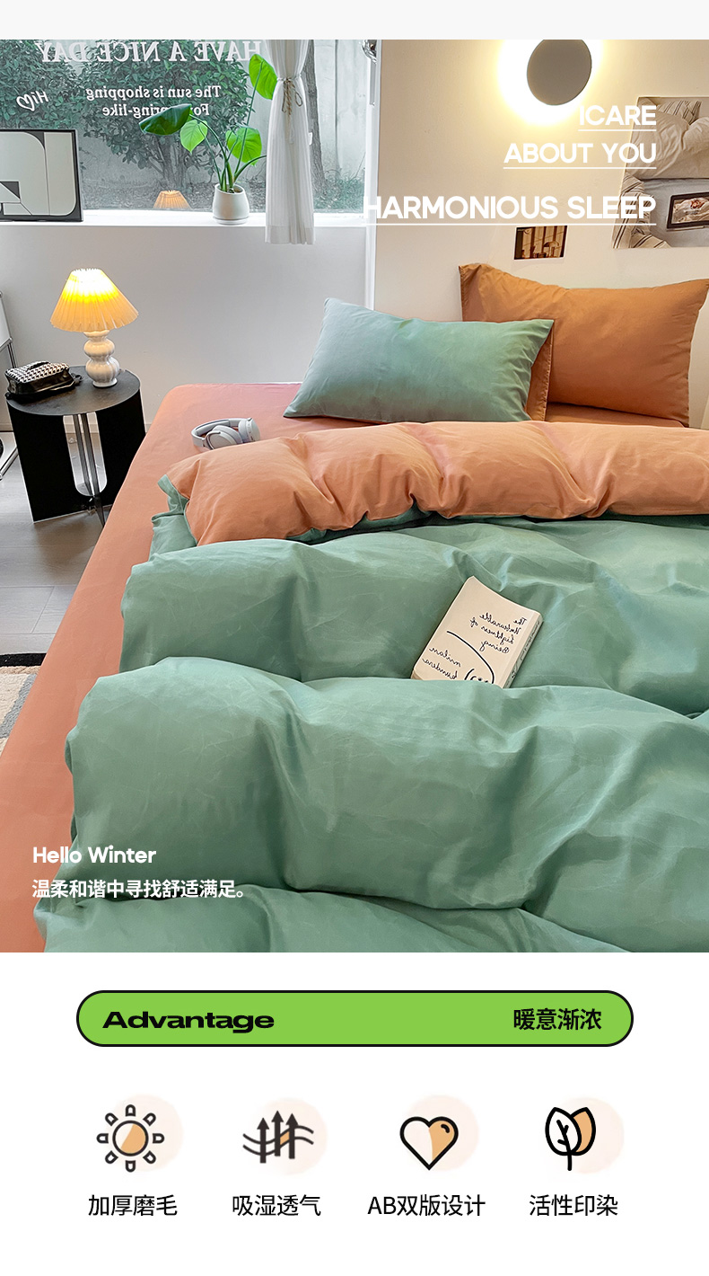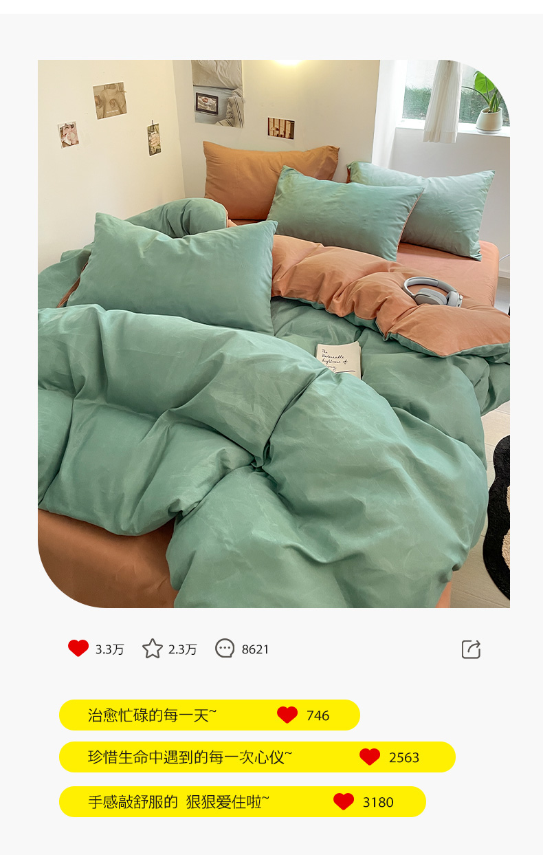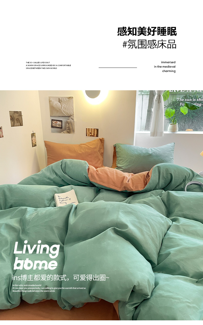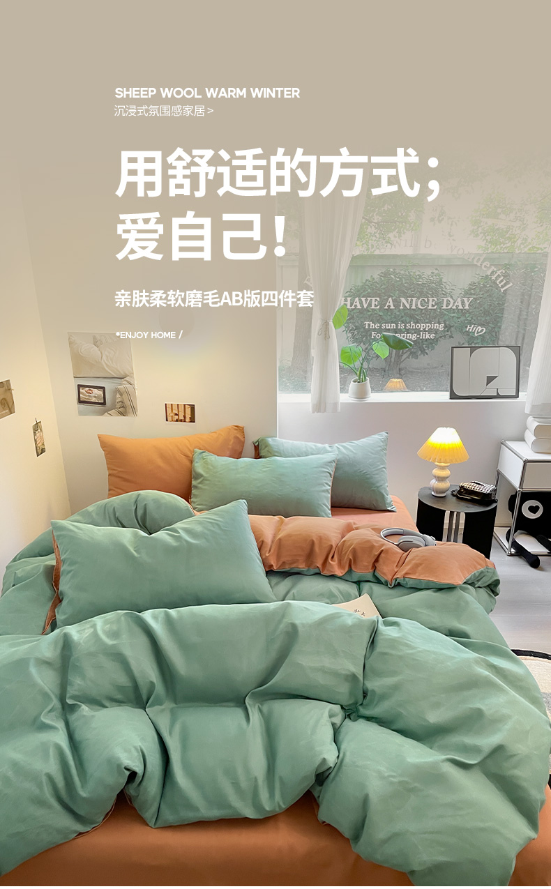 当前位置: 91家纺网 > 商品网购 > 床品套件 > 四件套 > 磨毛活性四件套 > 米粒 2024新款纯色简约双拼磨毛四件套 薄荷+甜曲奇