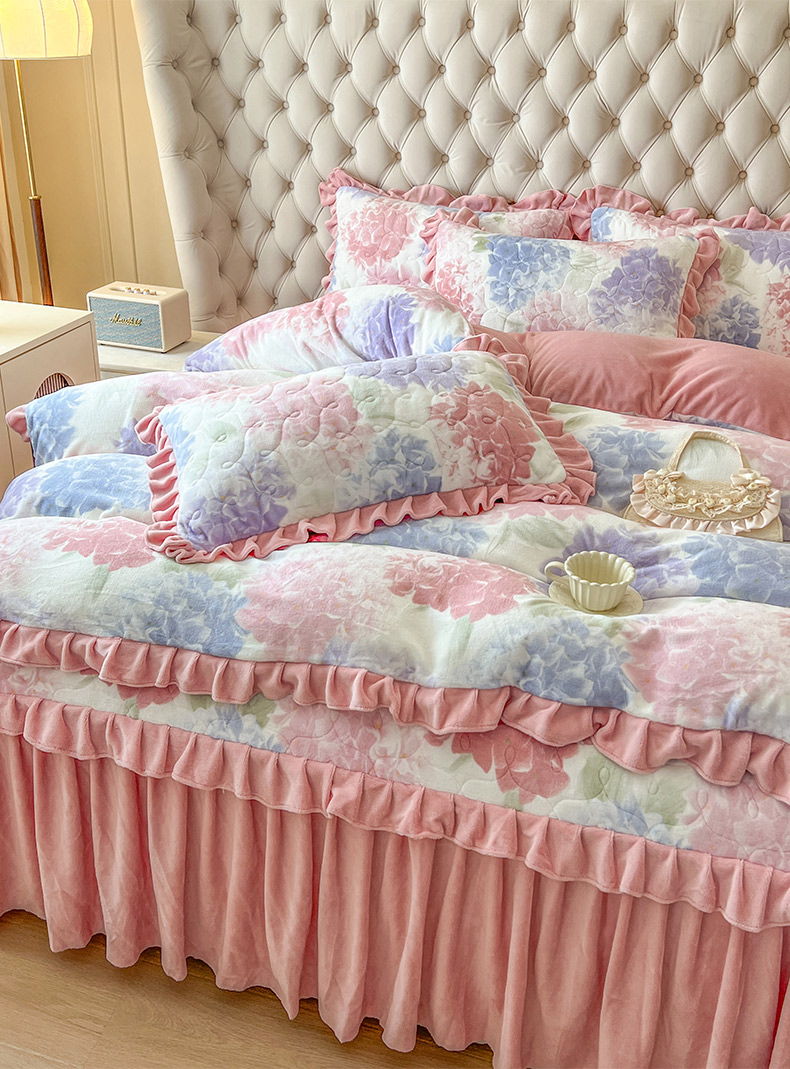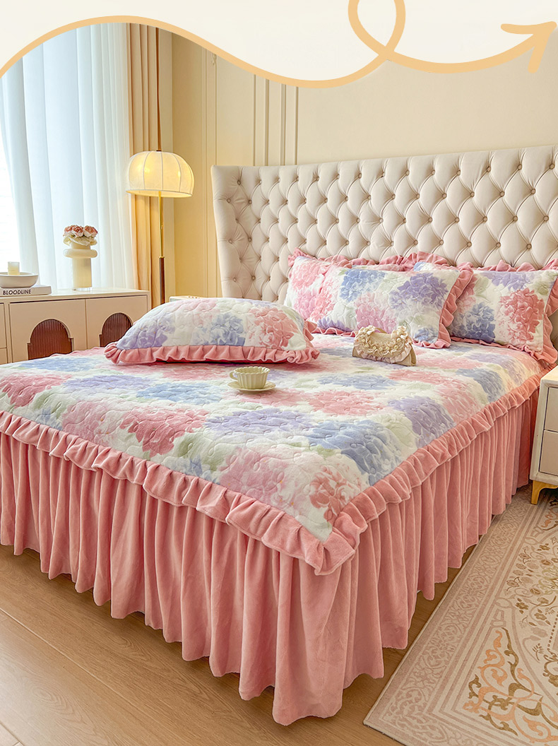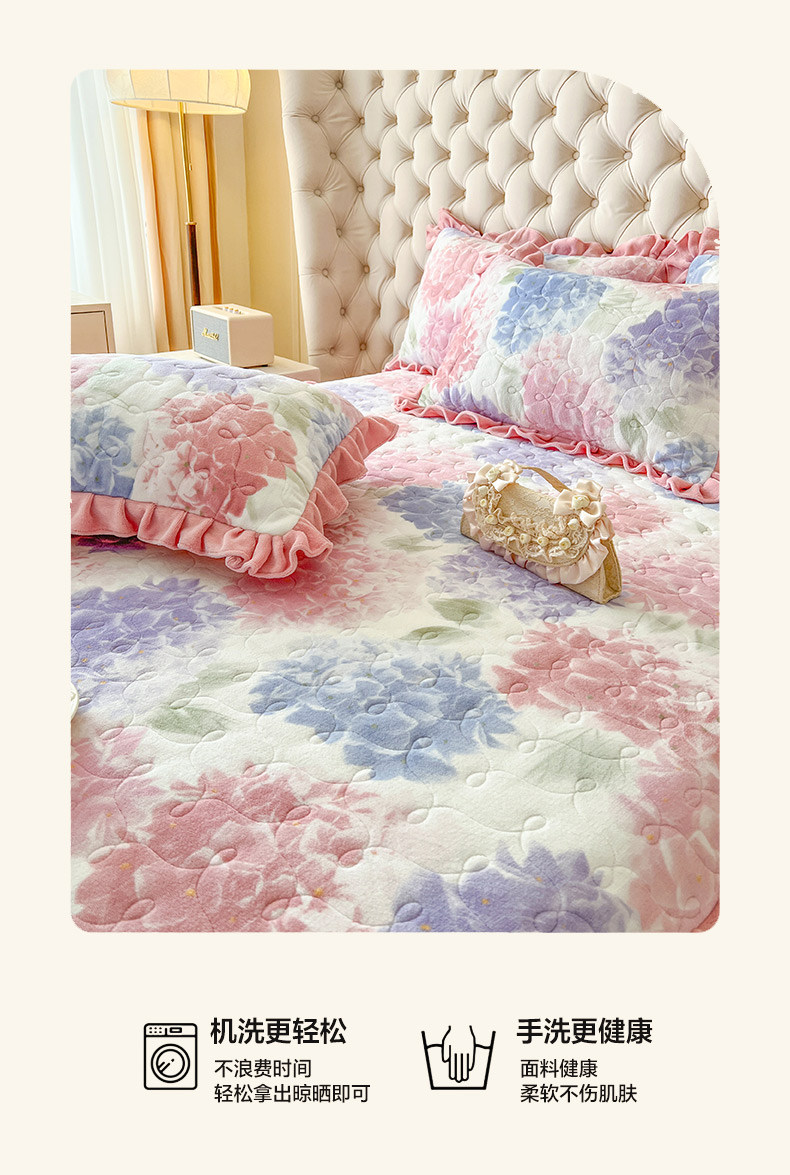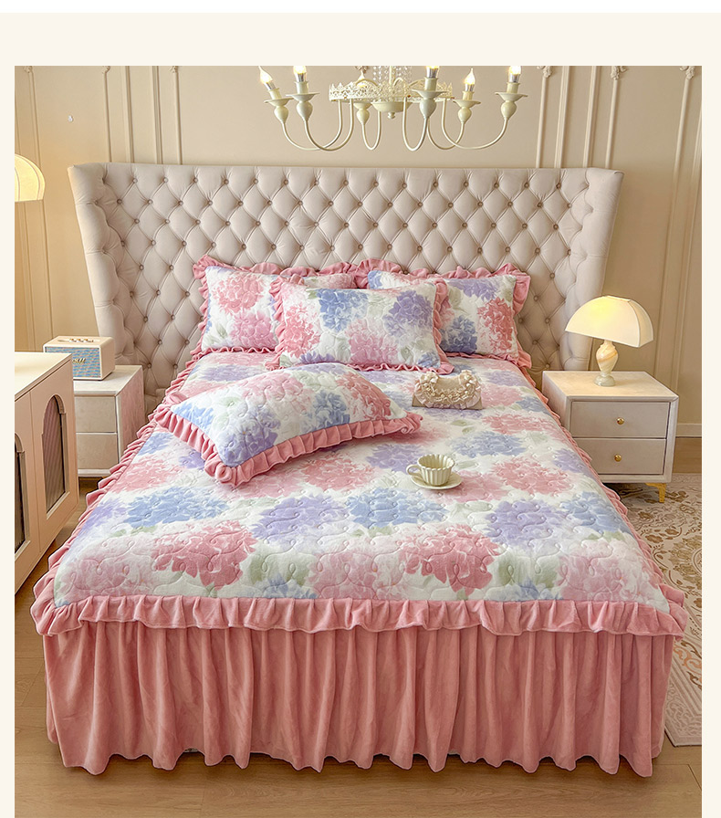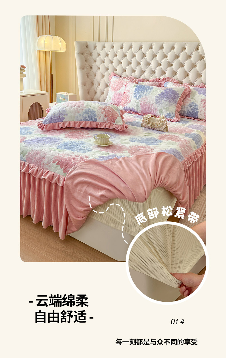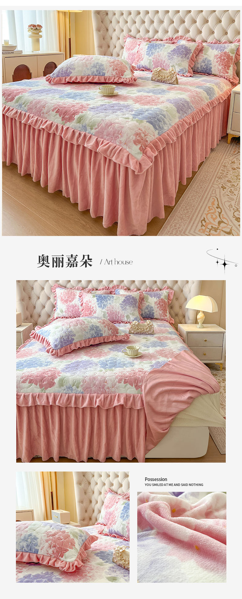 2024新款高克重印花牛奶绒加厚夹棉系列-床笠裙 奥丽嘉朵