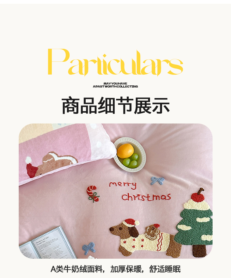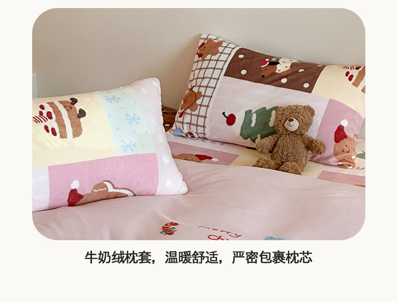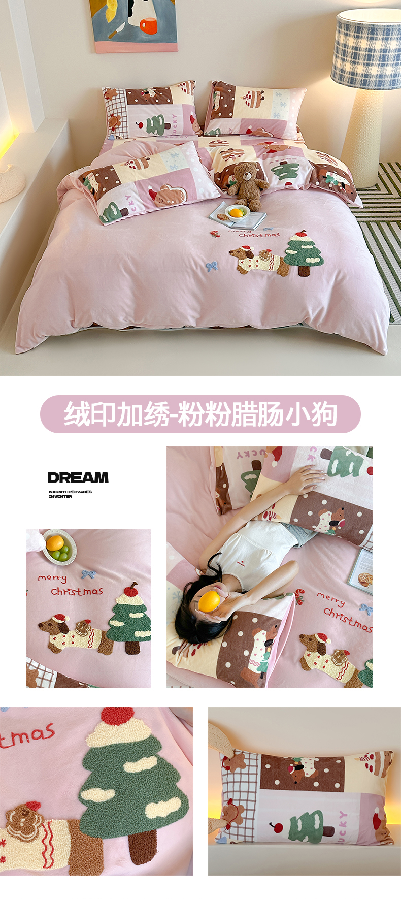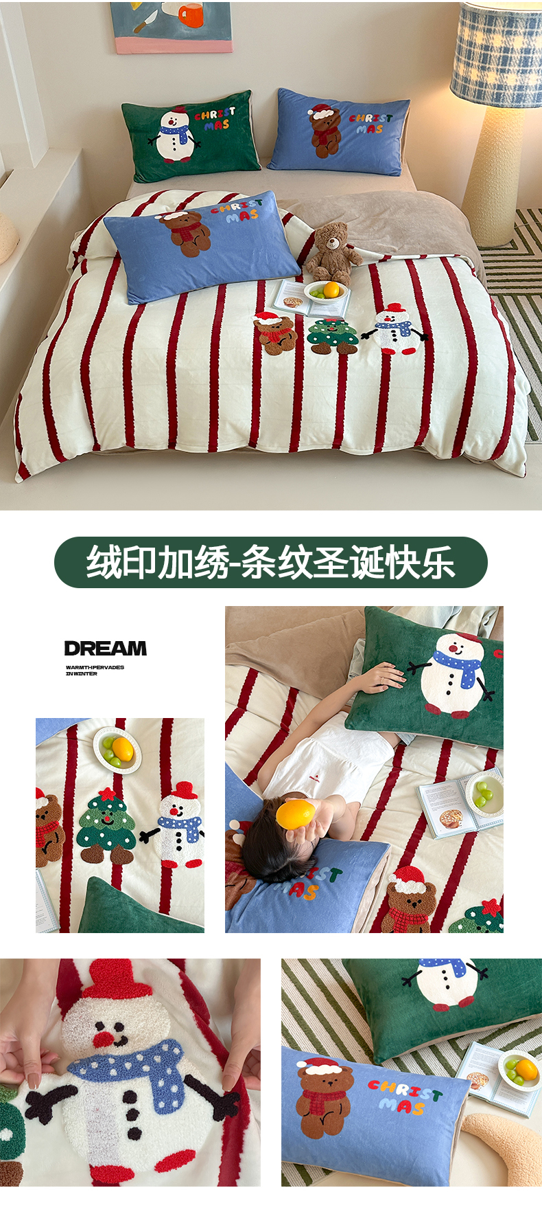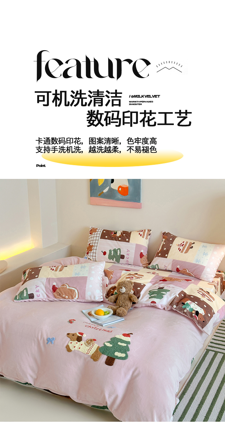 商品名称:(总)桃子家居 2024新款A类毛巾绣立体数码印花可爱卡通圣诞印加绣加厚牛奶绒系列四件套