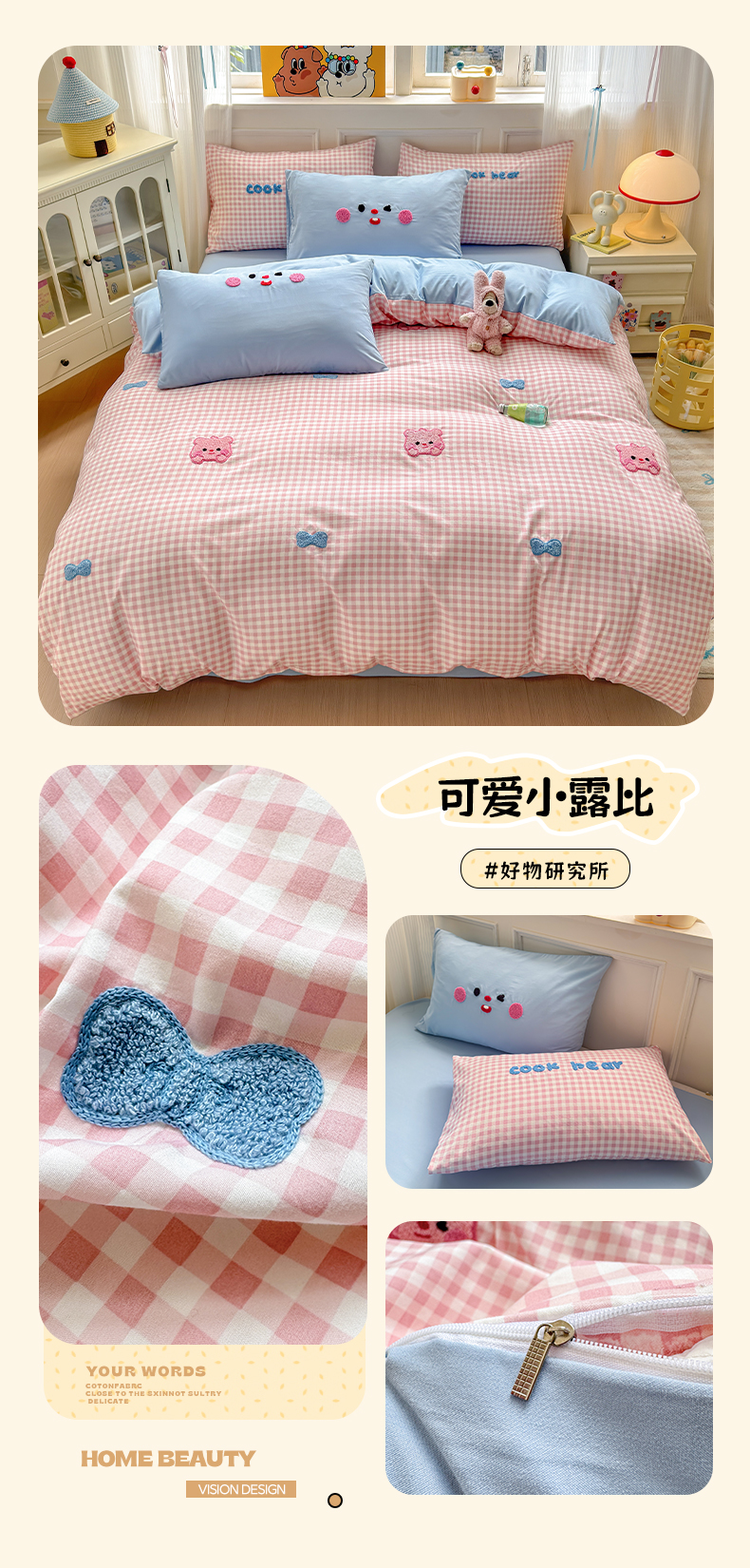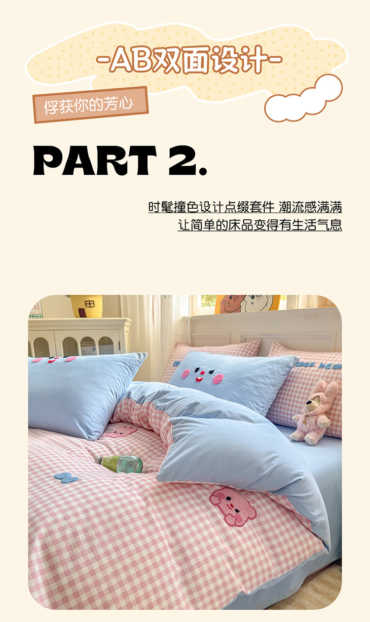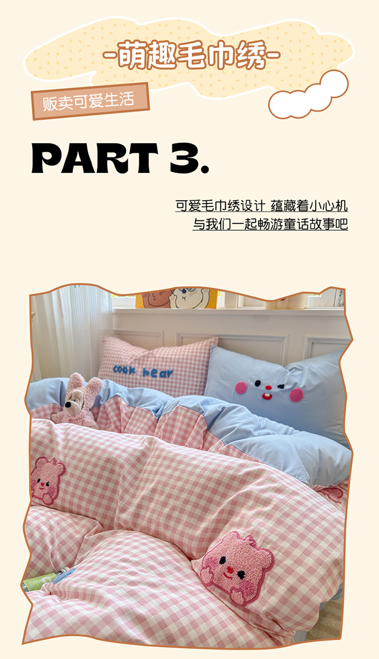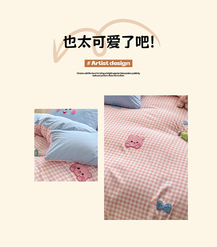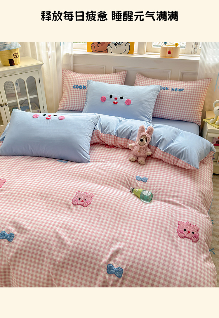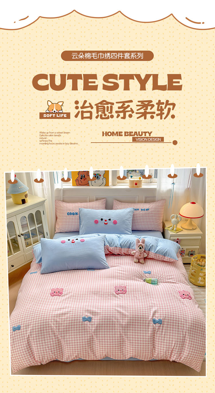 当前位置: 91家纺网 > 商品网购 > 床品套件 > 四件套 > 其它四件套 > 罗亿家纺 2025新款韩版糯糯棉(110克)毛巾绣四件套-场景三(提供买家秀) 可爱小露比