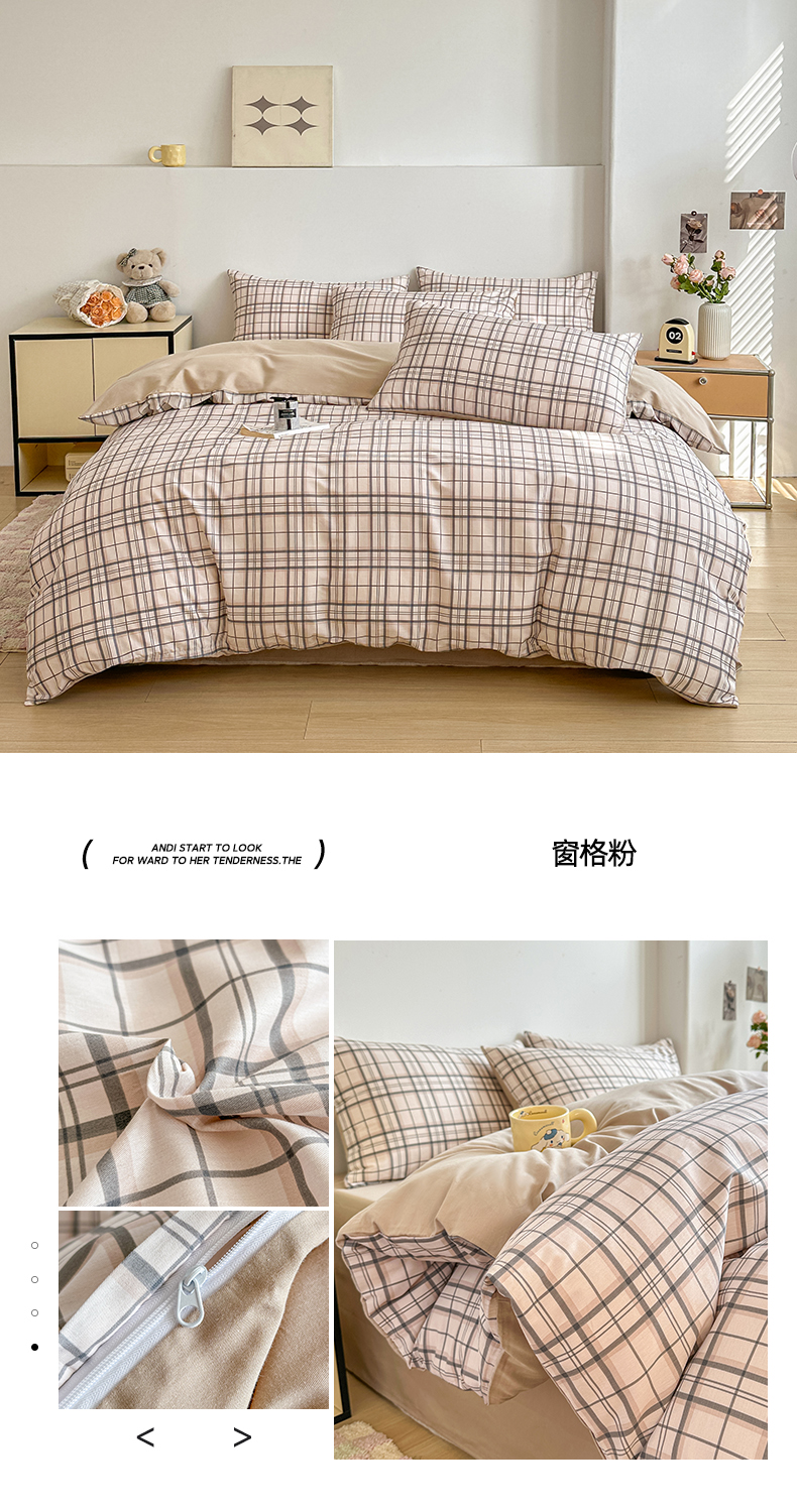 当前位置: 91家纺网 > 商品网购 > 床品套件 > 四件套 > 全棉普通四件套 > 柠馨 2025新款13372全棉印花四件套无印风系列 窗格粉