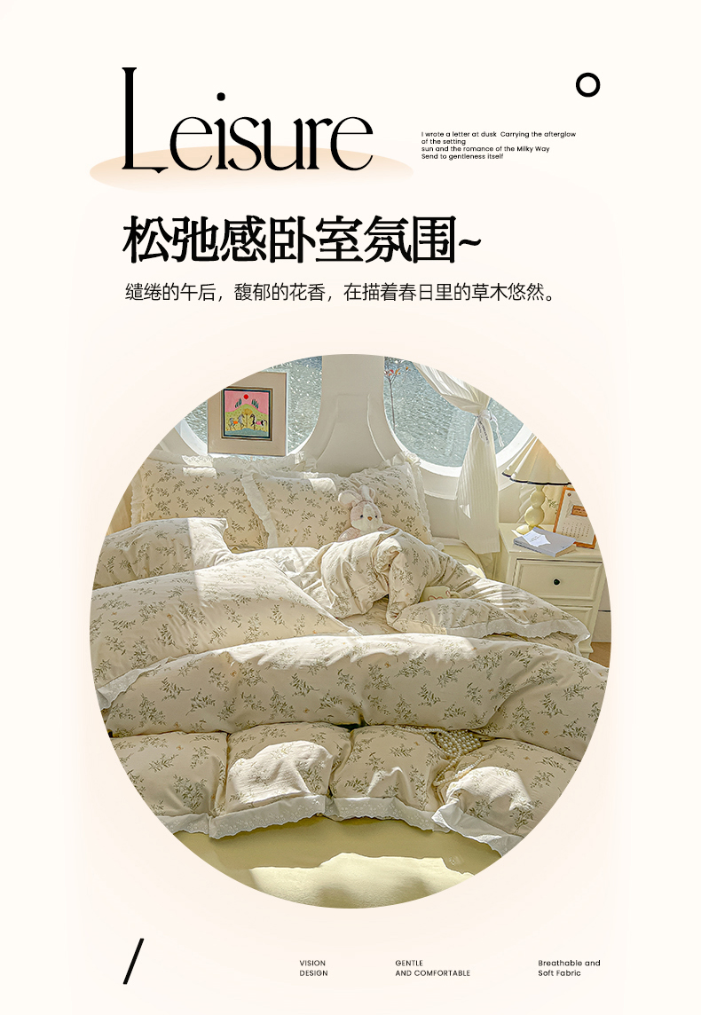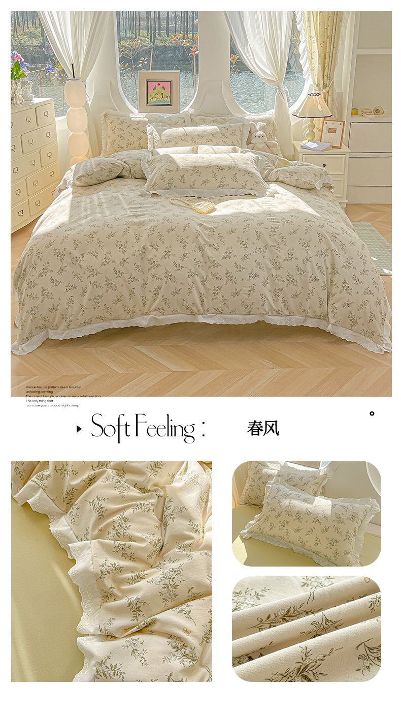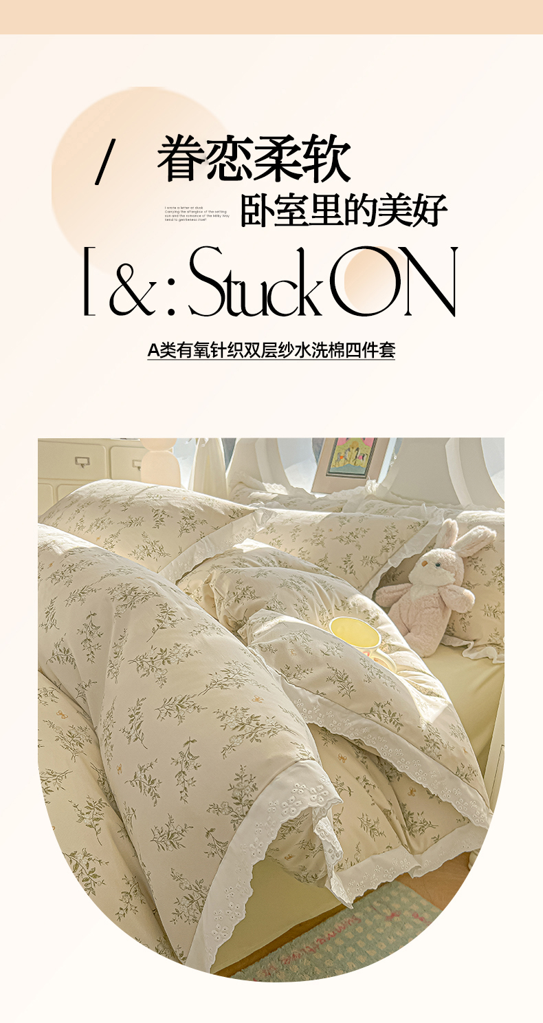 当前位置: 91家纺网 > 商品网购 > 床品套件 > 四件套 > 双层纱四件套 > 多乐家纺 2025新款A类有氧针织双层纱水洗棉四件套(提供买家秀) 春风