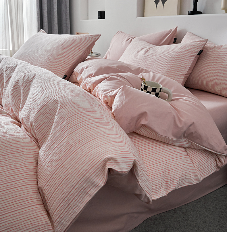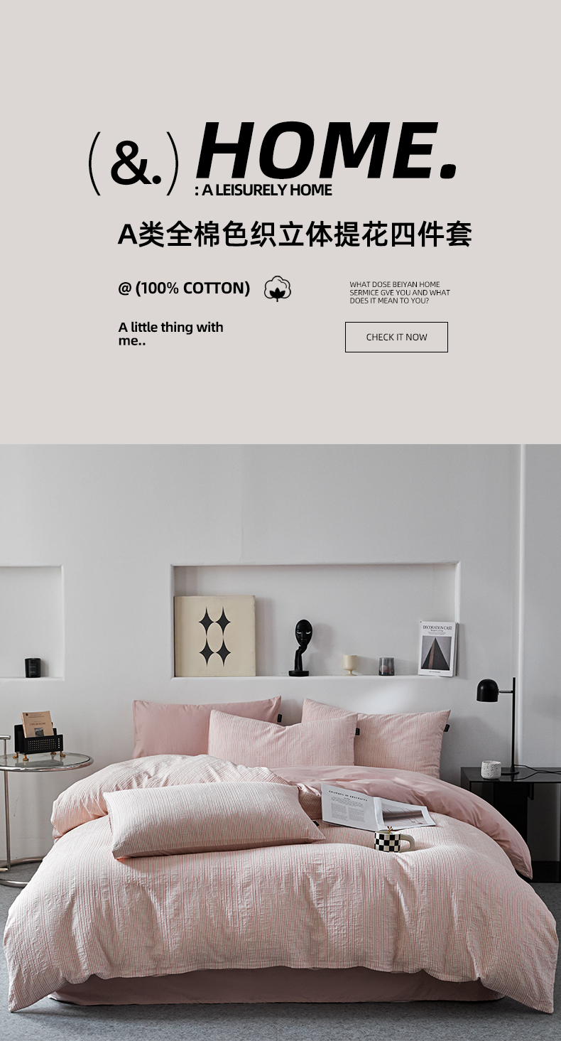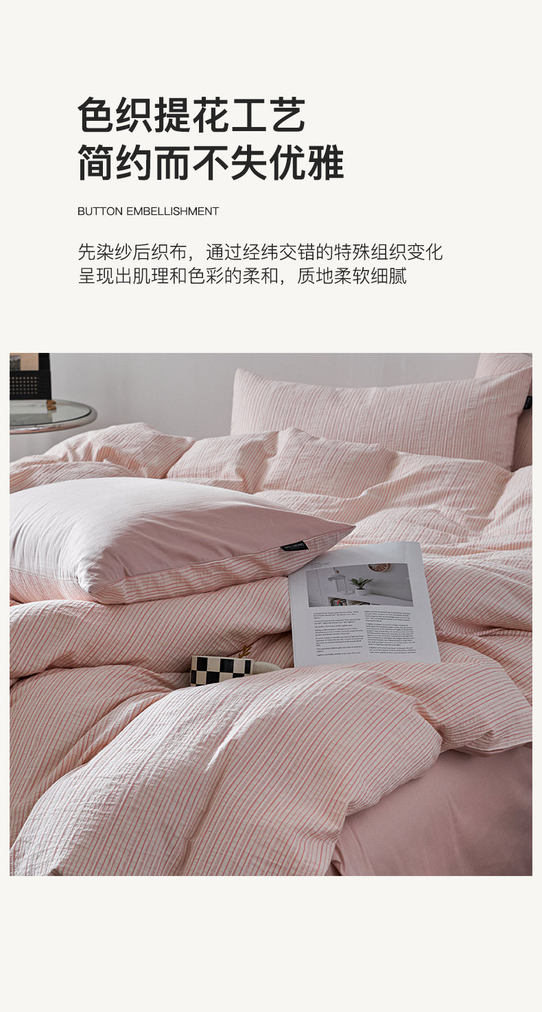 格里芬家纺 2025新款全棉色织水洗立体提花四件套-柏林 柏林-粉