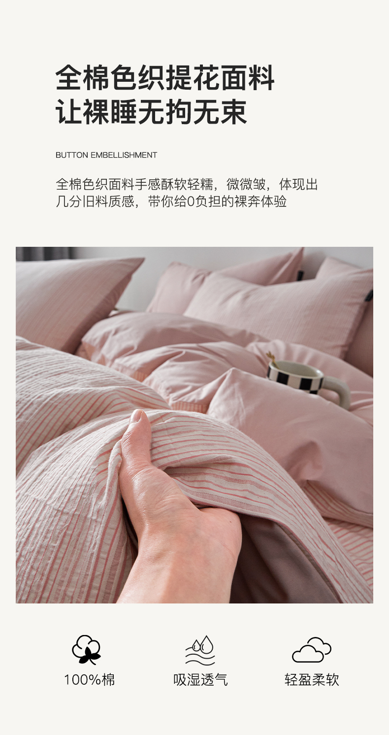 商品名称:格里芬家纺 2025新款全棉色织水洗立体提花四件套-柏林 柏林-粉