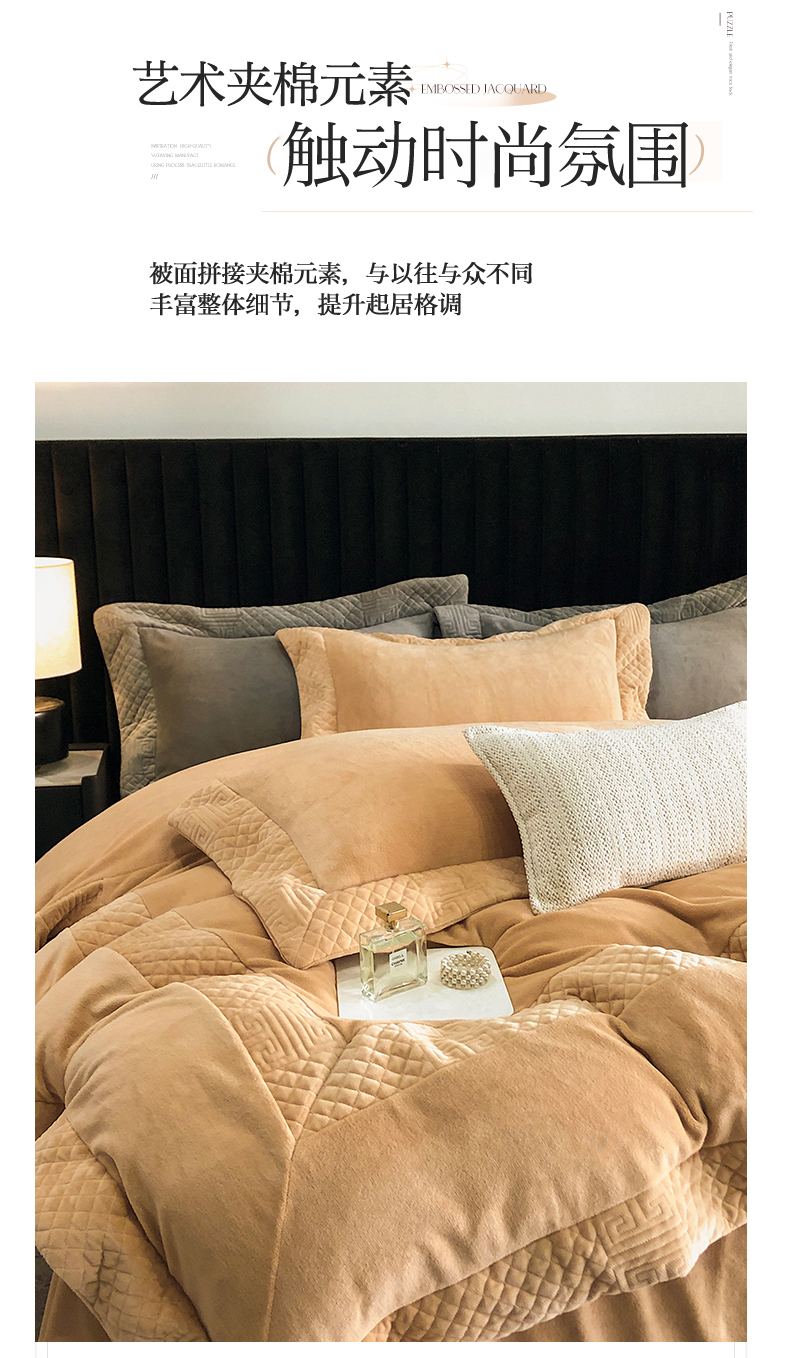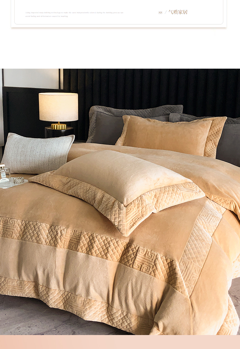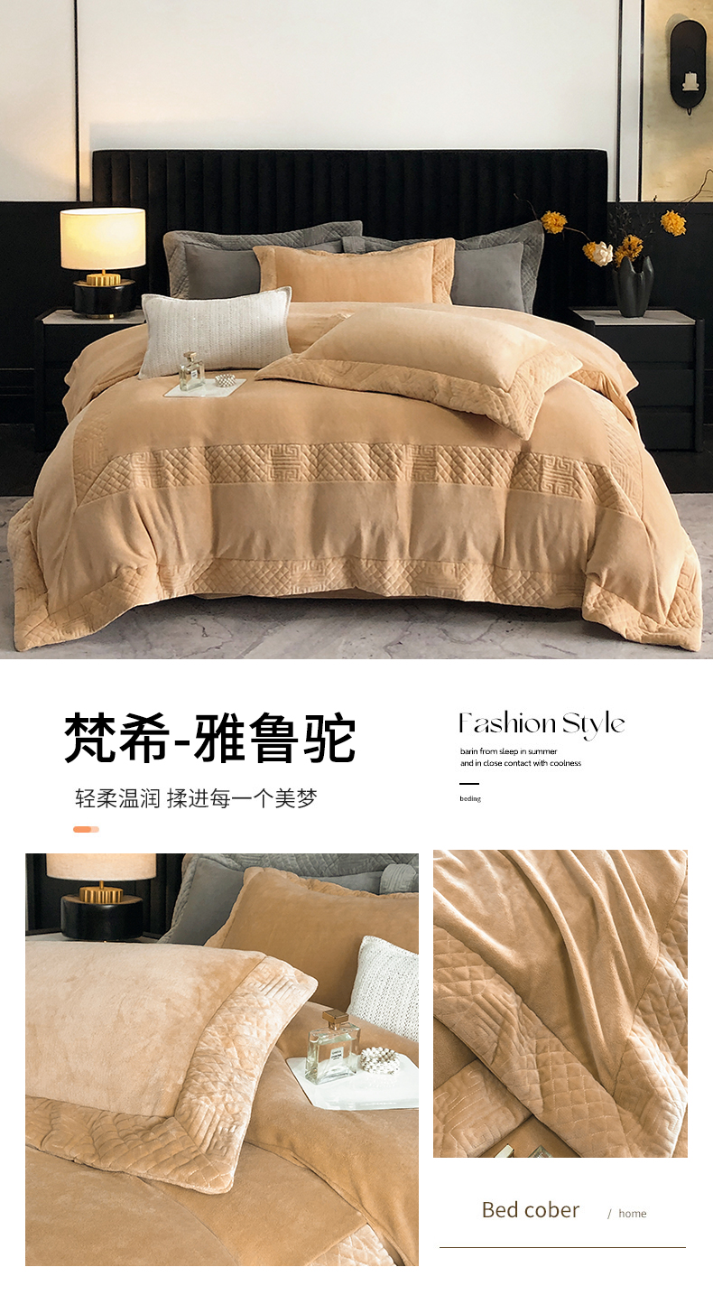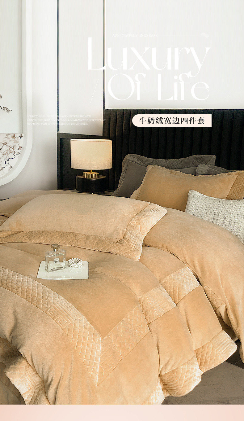 商品名称:保罗圣迪奥 2025新款牛奶绒宽边四件套-梵希 梵希-雅鲁驼