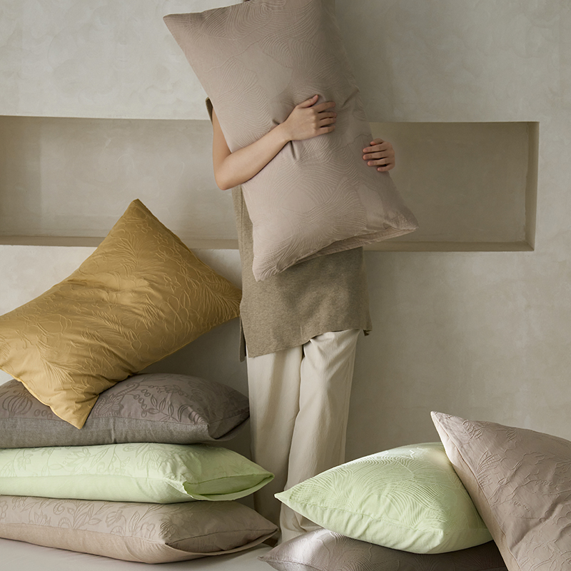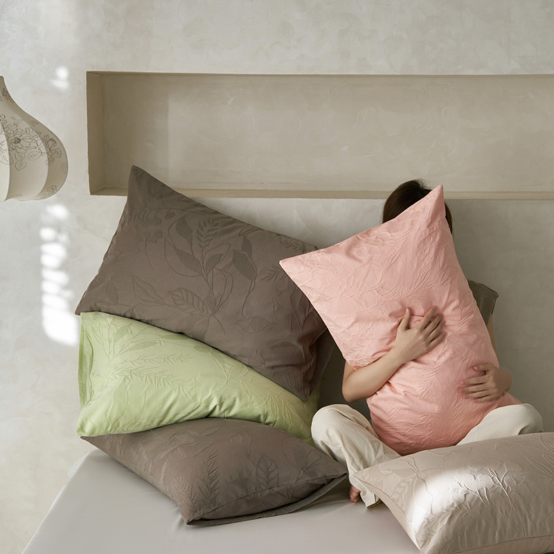 商品名称:2025春夏新品染色水洗大提花单品枕套 叶语-浅灰