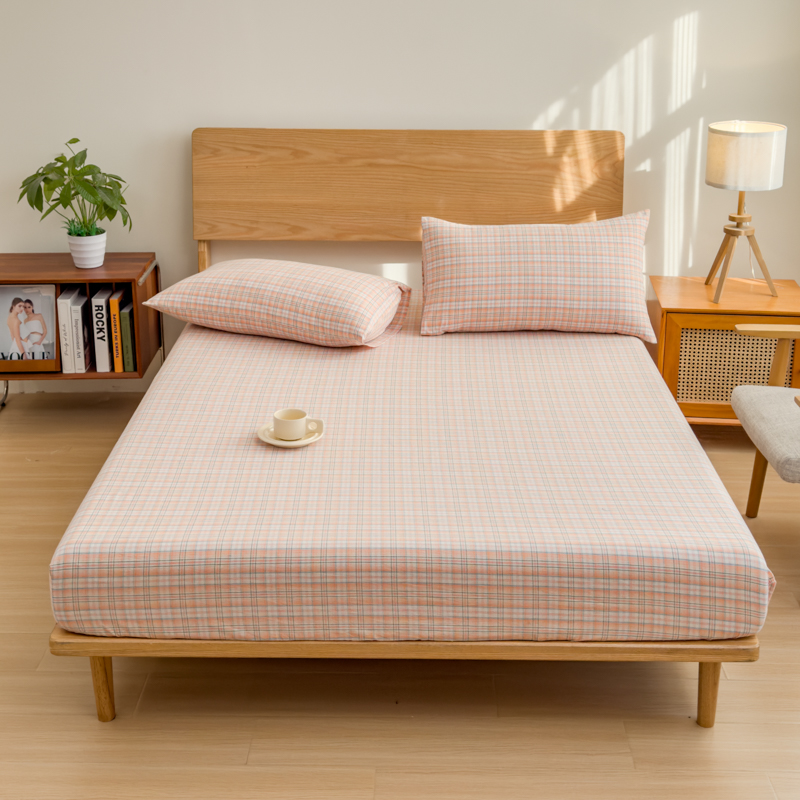 2025新款简约款色织水洗棉单品床笠 可可桔