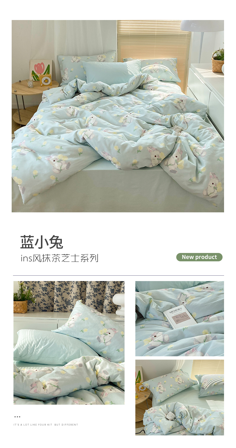 (总)尺素 2026新款纯棉卡通ins风四件套可爱少女风全棉被套纯色1.8床笠加大床单学生1.2三件套,告白熊--浅蓝,格调粉--奶黄,格调粉--桃粉,蓝白情书--浅蓝,清梦--冰沙绿,清梦--浅黄,小熊软糖--焦糖