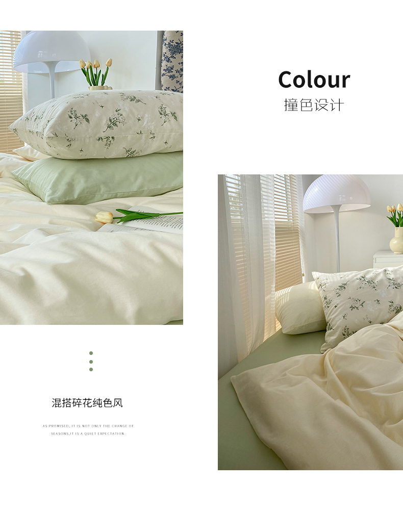 (总)尺素 2026田园小清新纯棉四件套出口韩国ins博主风全棉被套纯色加大床单1.8床笠印花枕套学生宿舍三件套,春不晚 桃粉,花似锦 奶白,紫鸢千夏紫