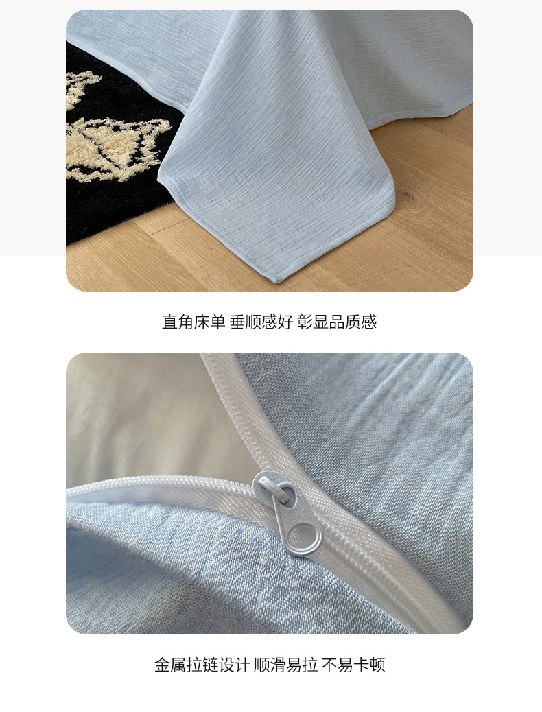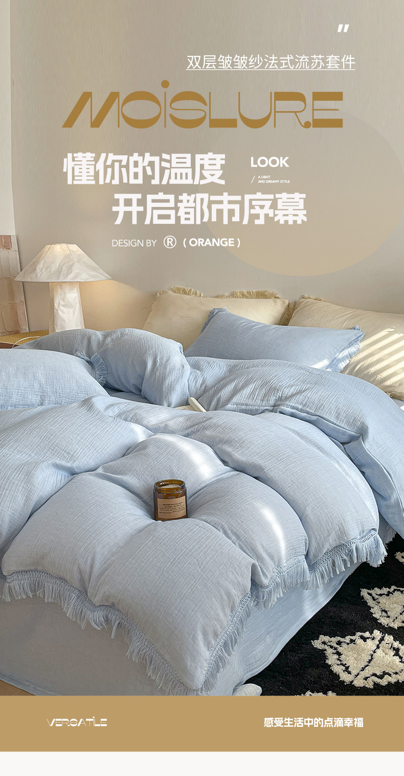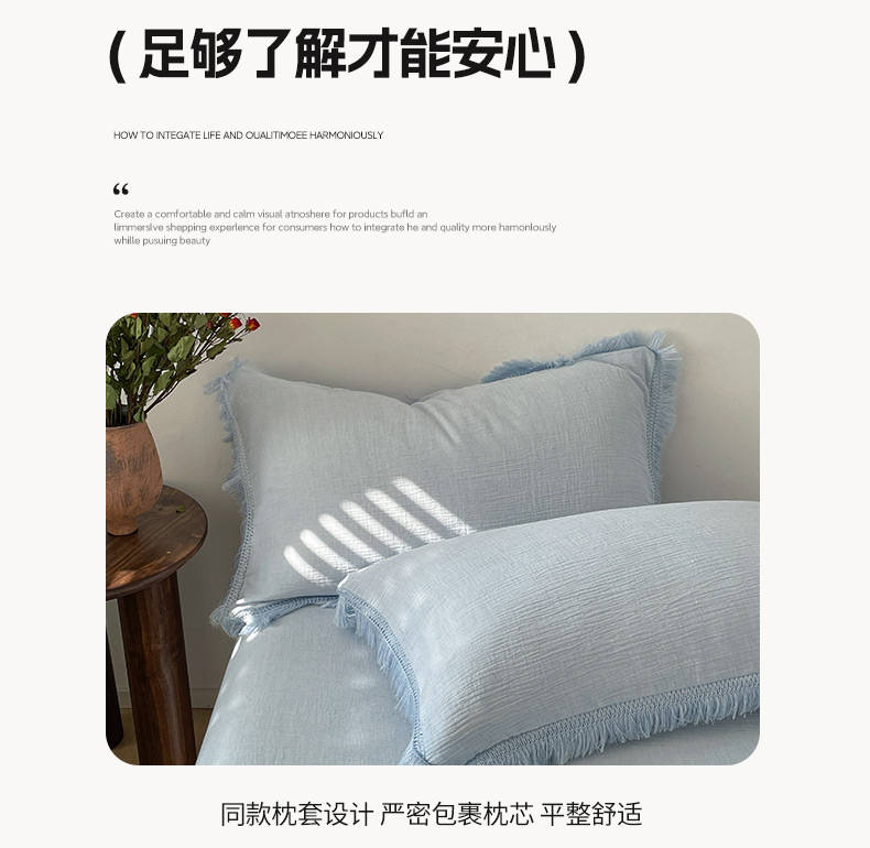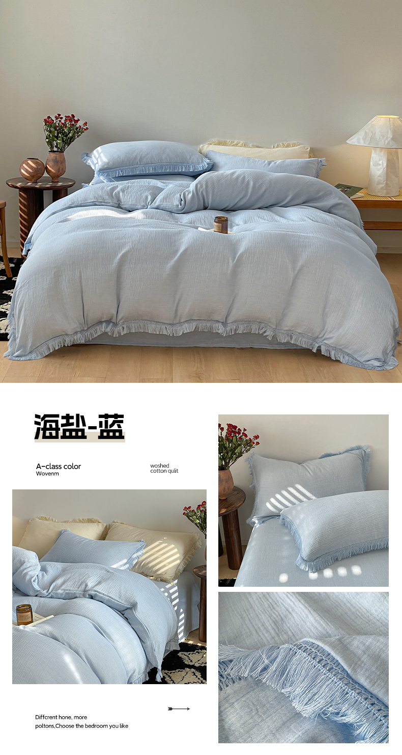 商品名称:卡巴伦家纺 2025新款双层皱皱纱法式流苏款四件套【全网控价(折后券后)不低于标准278/加大298元】 海盐-蓝