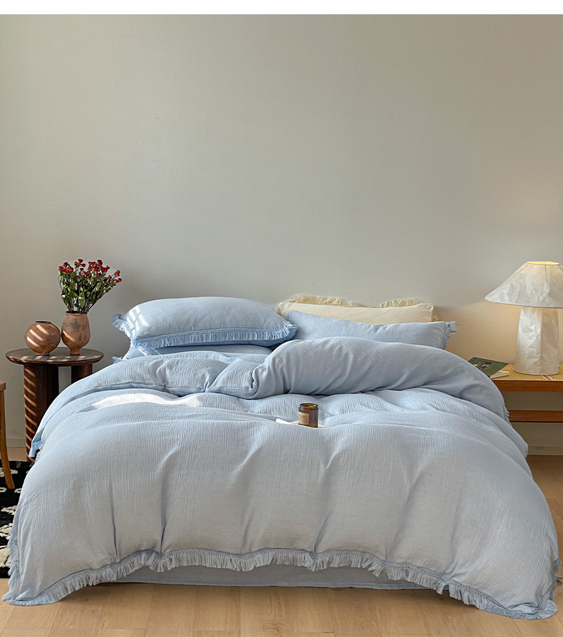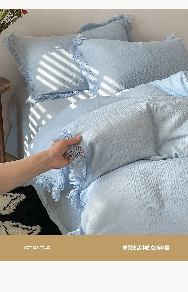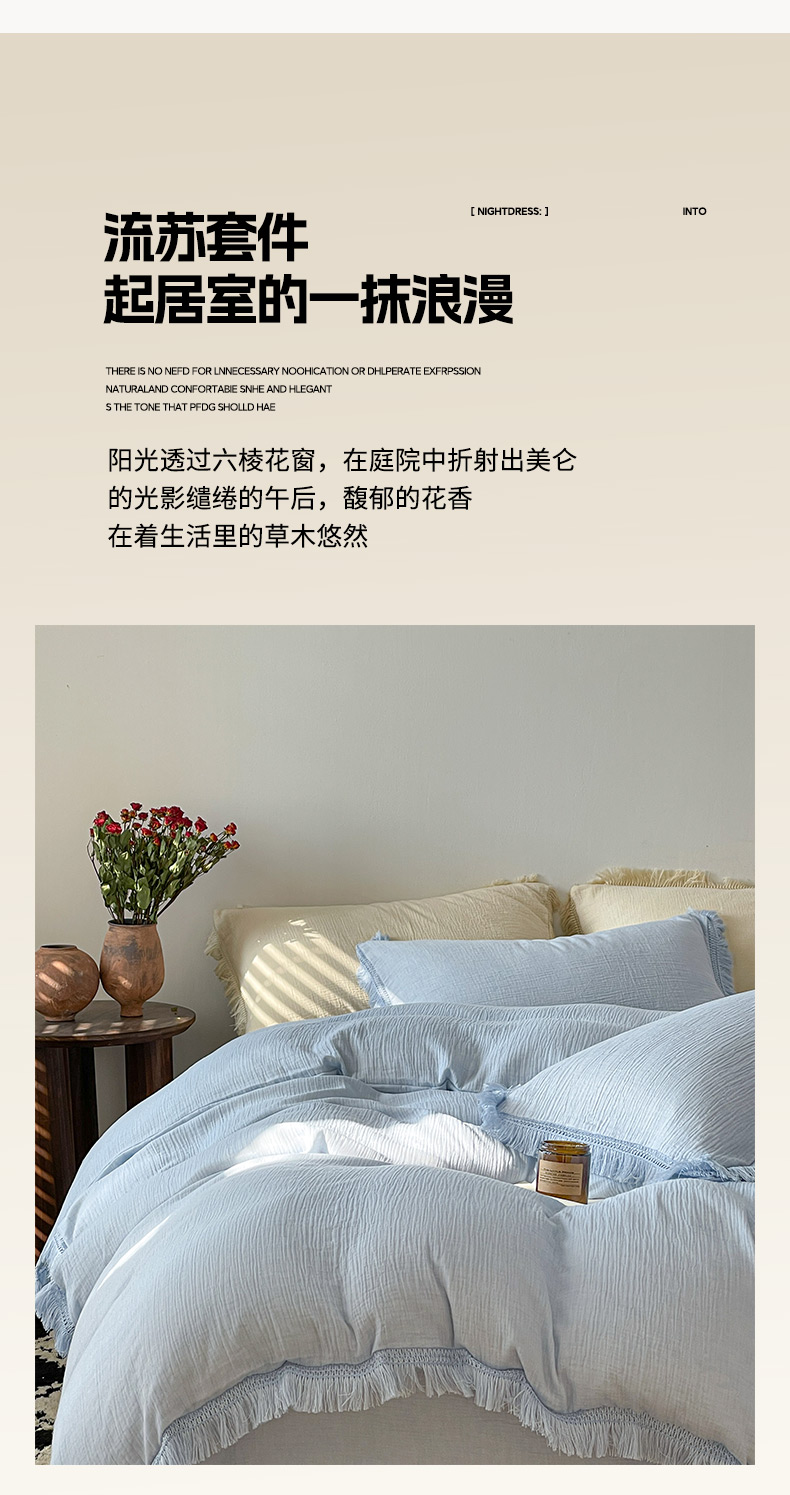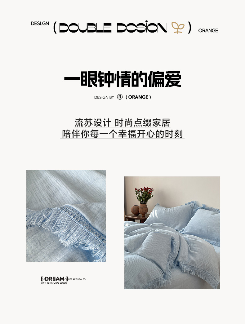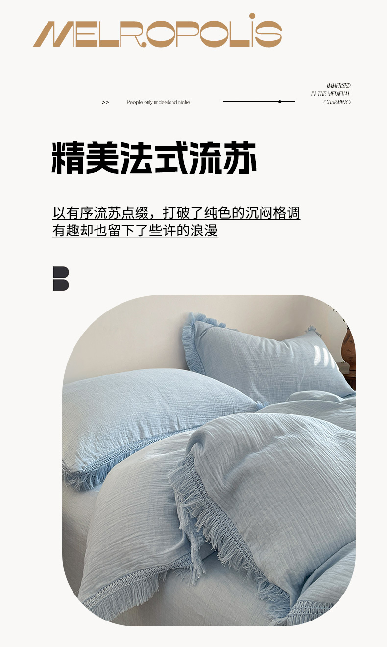 卡巴伦家纺 2025新款双层皱皱纱法式流苏款四件套【全网控价(折后券后)不低于标准278/加大298元】 海盐-蓝