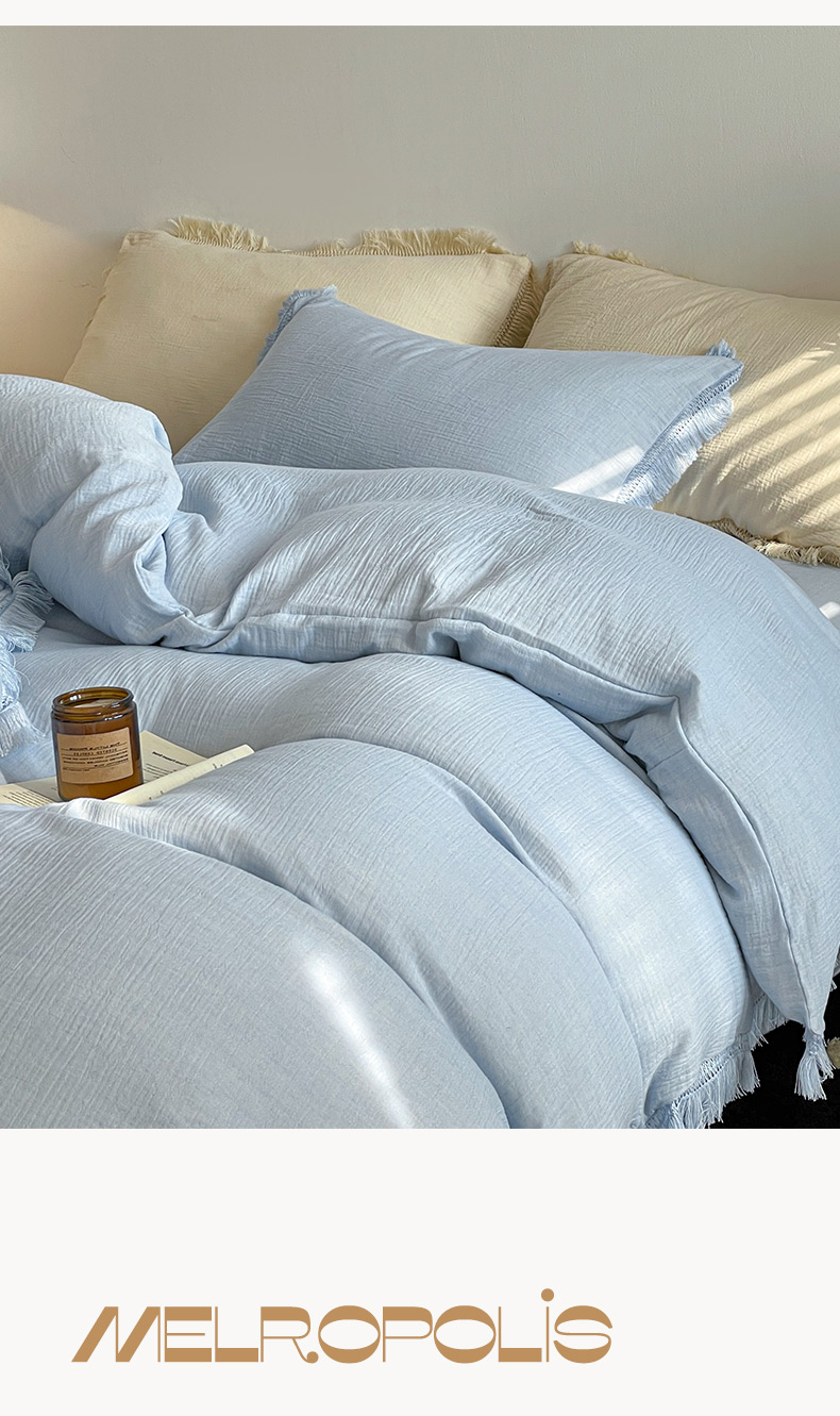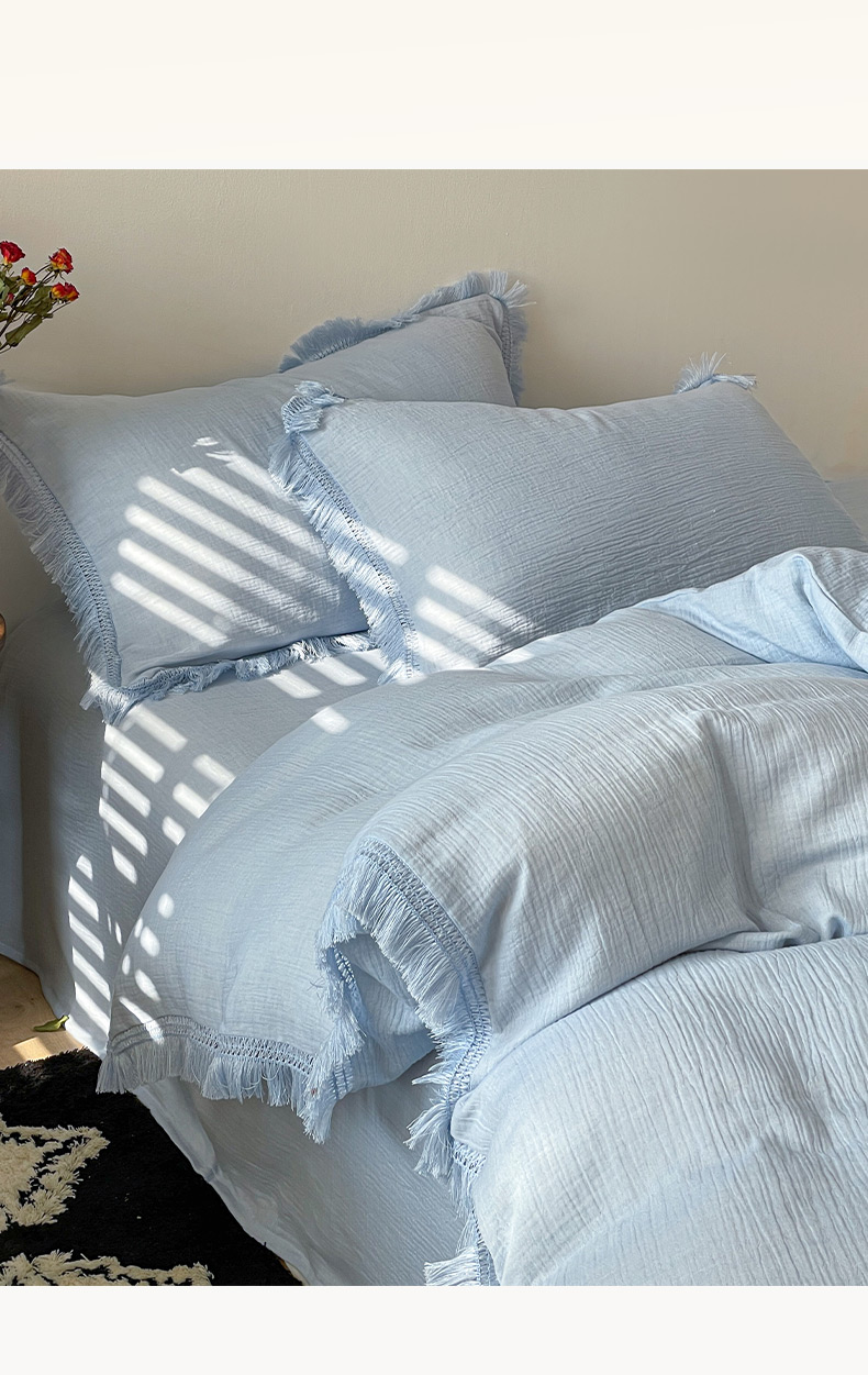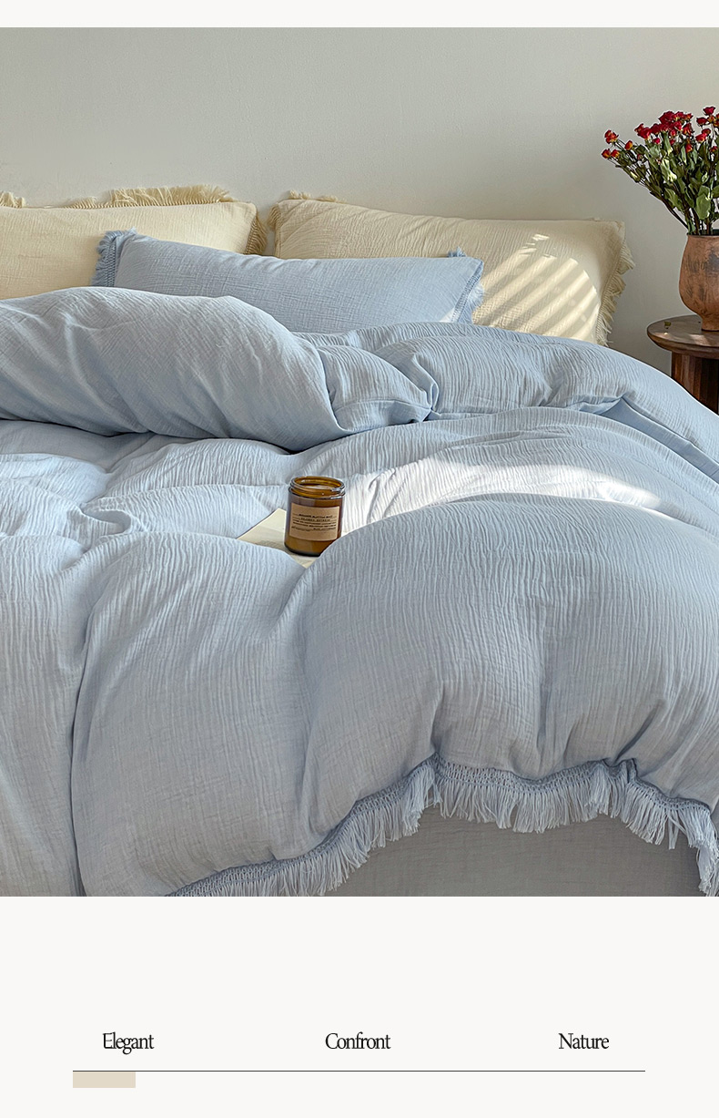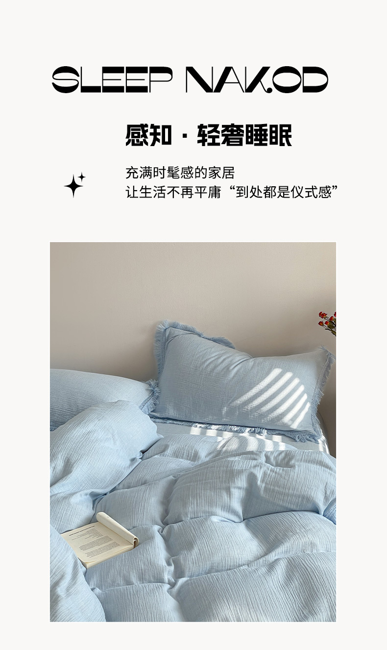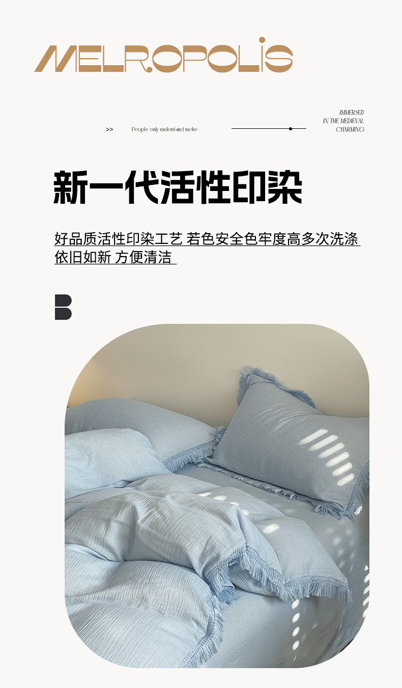 卡巴伦家纺 2025新款双层皱皱纱法式流苏款四件套【全网控价(折后券后)不低于标准278/加大298元】 海盐-蓝