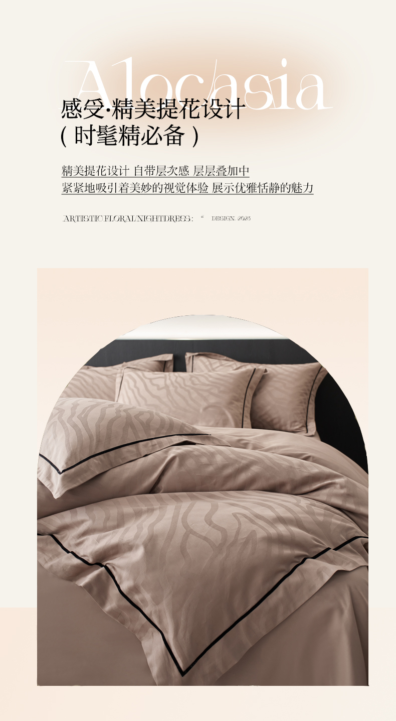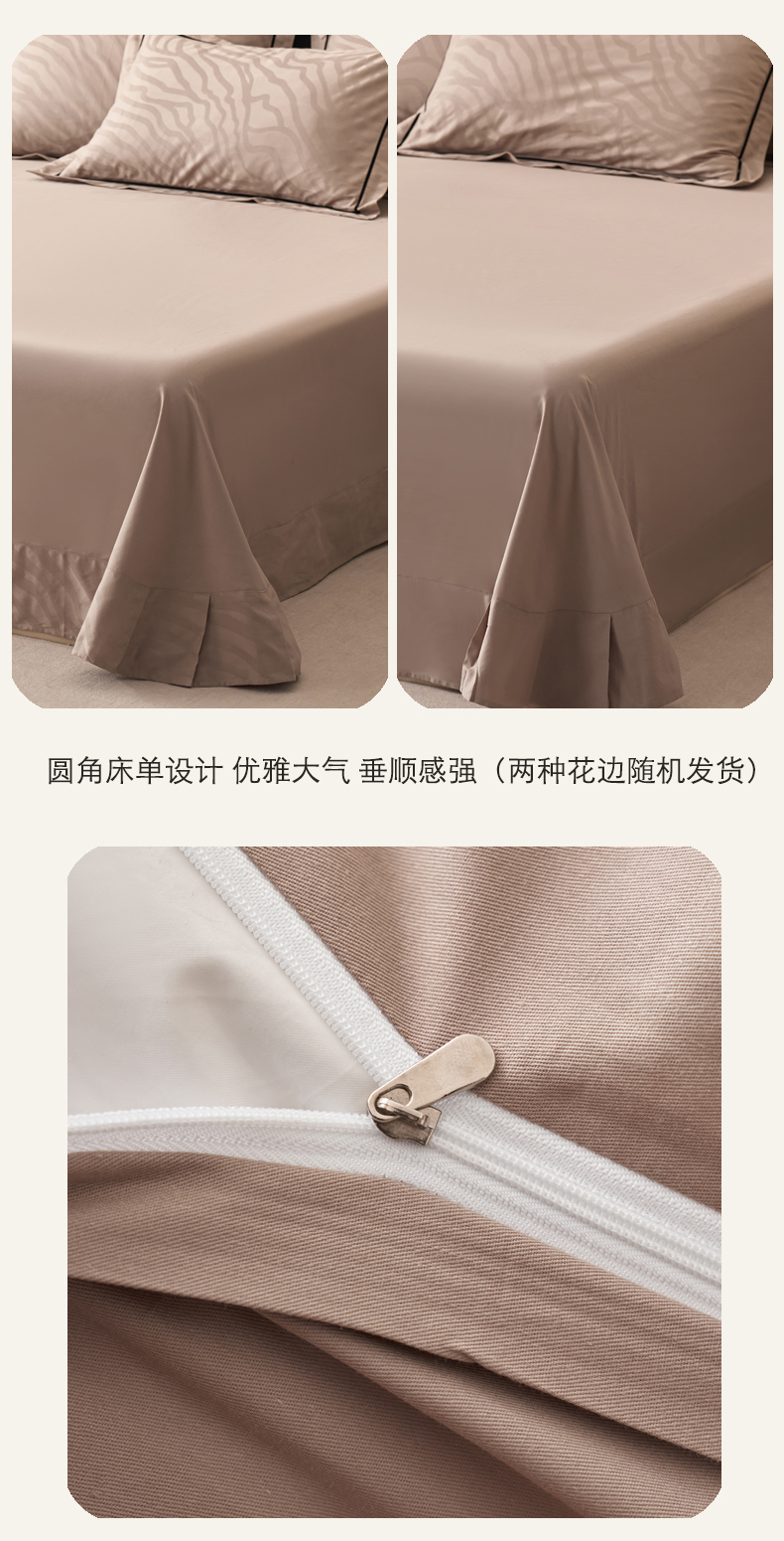 三朵全棉60S贡缎长绒棉大提花四件套-花序系列 漫生活-咖