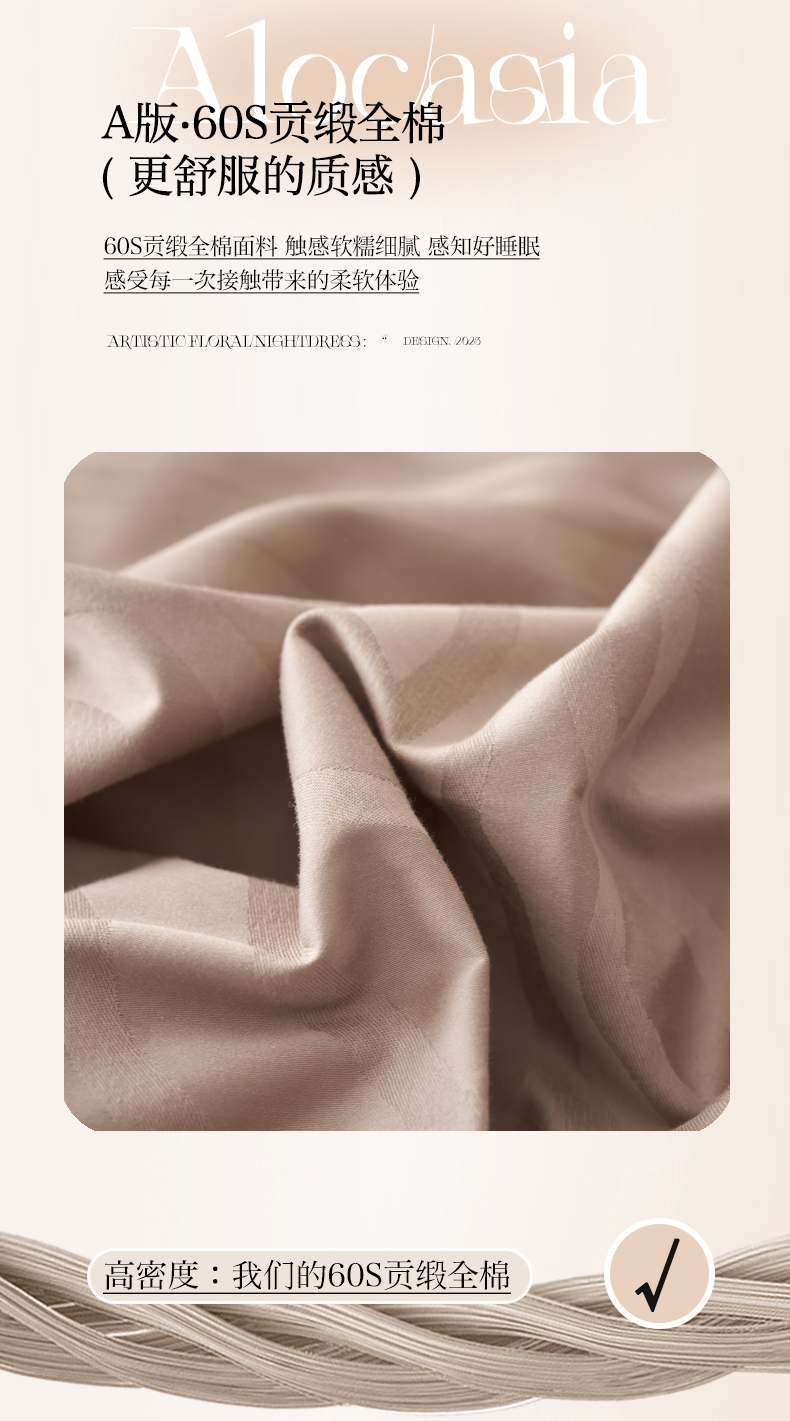 商品名称:三朵全棉60S贡缎长绒棉大提花四件套-花序系列 漫生活-咖