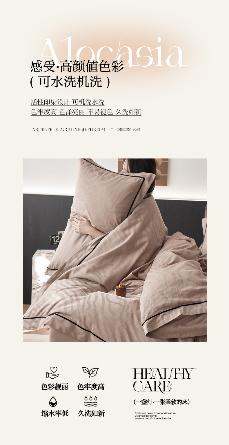 (总)三朵家纺 2026新款ins风全棉纯色双拼水洗棉四件套极简风系列,风青月白,焦糖曲奇,蓝韵雾纱,流光奶绿,抹茶奶黄,浅蓝芝士,香芋奶昔,烟墨灰,云纱可可