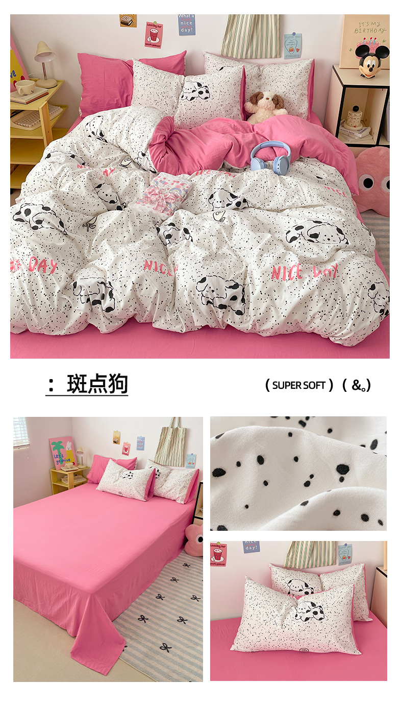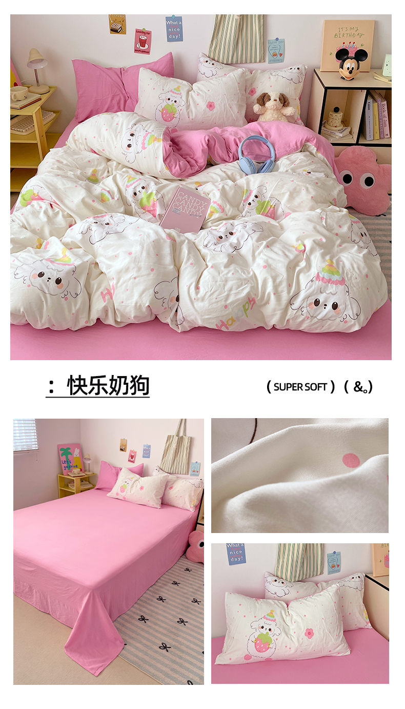 (总)卡斯诺 2025新款芦荟棉四件套7月新花型,萌萌狗,布丁狗,丛林猫,蝶恋花,粉色小熊,开心树,绿野仙踪,美好时光,萌兔宝贝,迷恋,喵星人,墨迹,甜心汪汪,旺旺小狗,幸运女孩,熊猫日记,着迷