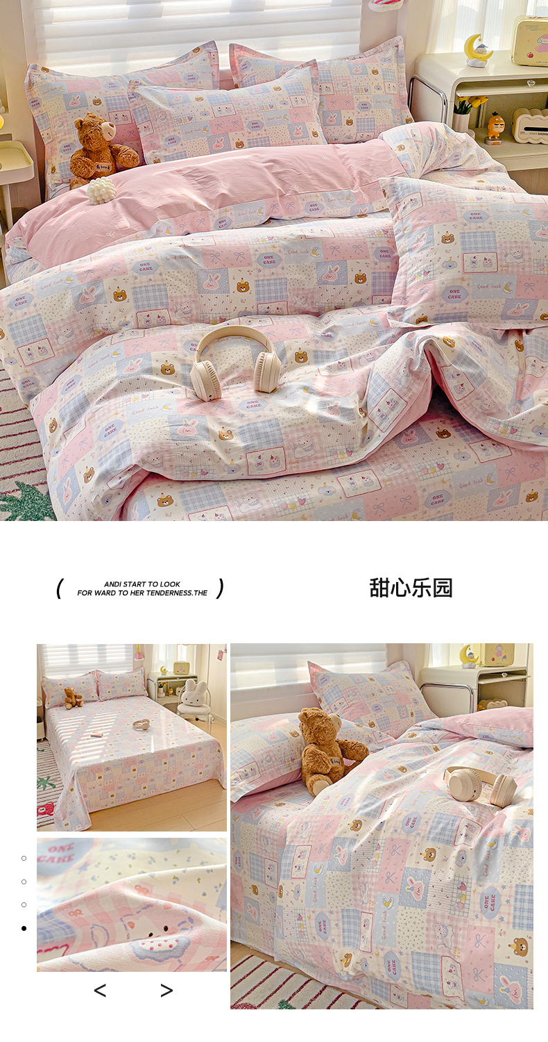 当前位置: 91家纺网 > 商品网购 > 床品套件 > 四件套 > 全棉普通四件套 > 春雨家居 2025新款春夏卡通印花全棉四件套 甜心乐园