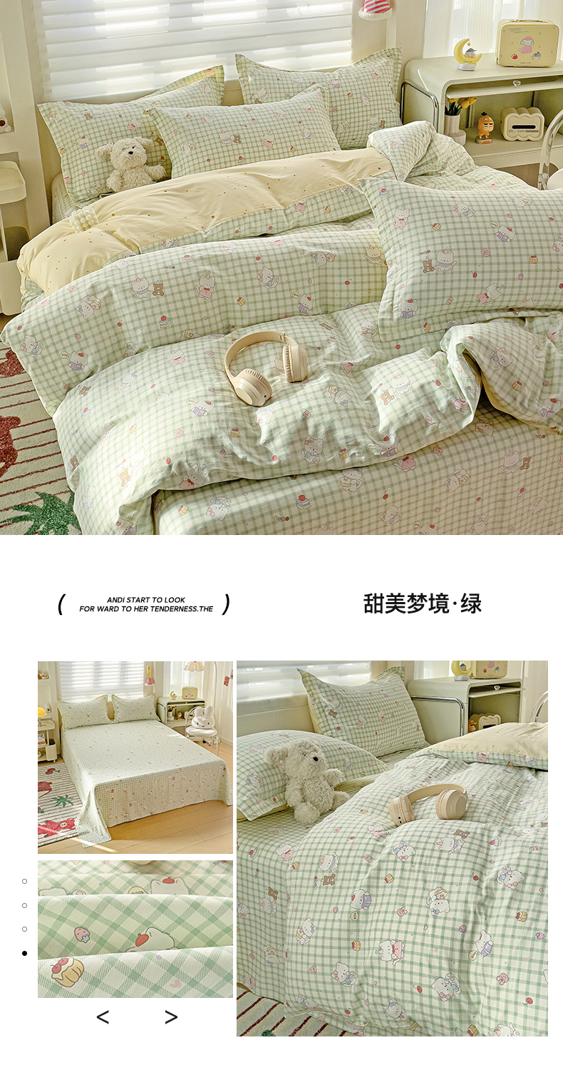 当前位置: 91家纺网 > 商品网购 > 床品套件 > 四件套 > 全棉普通四件套 > 春雨家居 2025新款春夏卡通印花全棉四件套 甜美梦境-绿