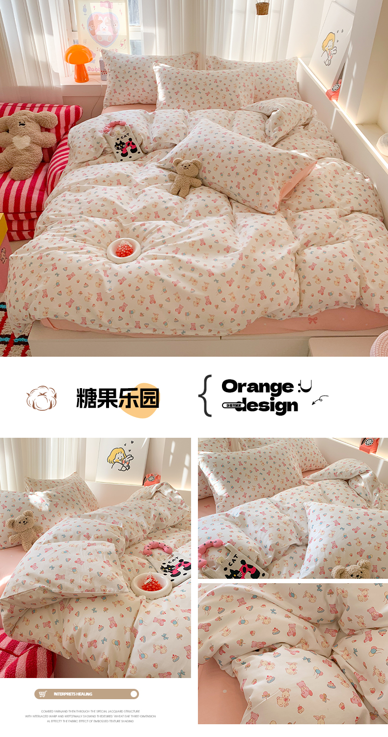 商品名称:澳萝拉 2025新款小碎花清新春夏全棉花边双层纱韩系三件套四件套 糖果乐园