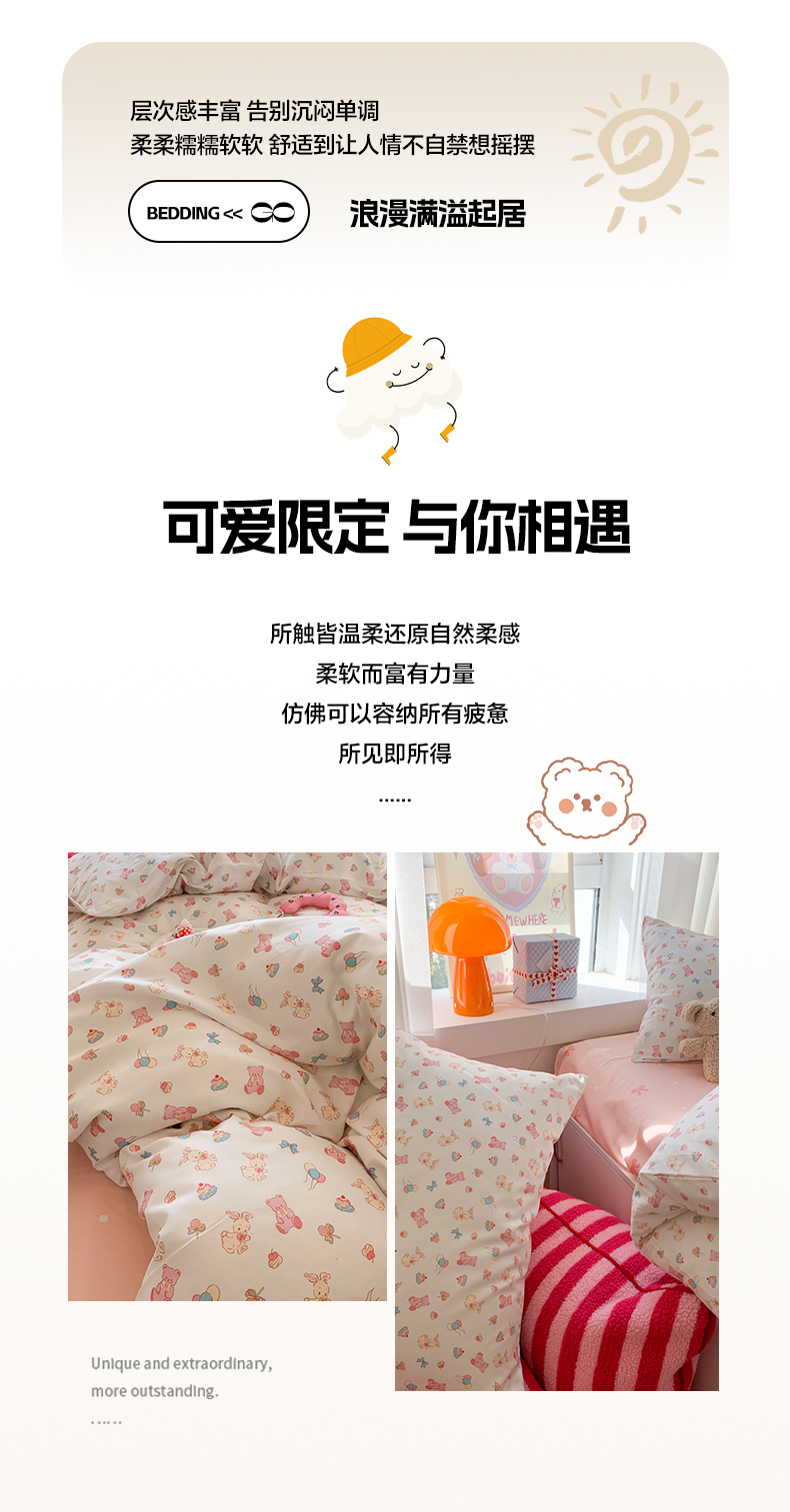 (总)澳萝拉 2023新款全棉印花四件套会员减5元,嗨迪诺,可爱多多,可可朵朵,兔兔莓莓,熊熊的面包,安绘里,豹纹棕熊,草莓花园,粉心小熊,简单生活,快乐星球,蓝心小熊,时尚熊,贪吃鲨,甜心花园,甜心小兔,童话镇,元气小熊,薄荷奶绿,黑糖乳酪,花语仙踪,秘密花园,暖时光,童趣园,野餐森林,元气花花,元气橘,云上花园,呆萌狗,古灵精怪,乖乖兔,好事发生,花朵兔兔,花园漫步,焦糖布丁,爵士汪,奇幻星球,糖果兔兔,甜甜圈,小确幸,小甜心,心动甜心,星际兔,游乐园,云朵兔兔,芝芝汪