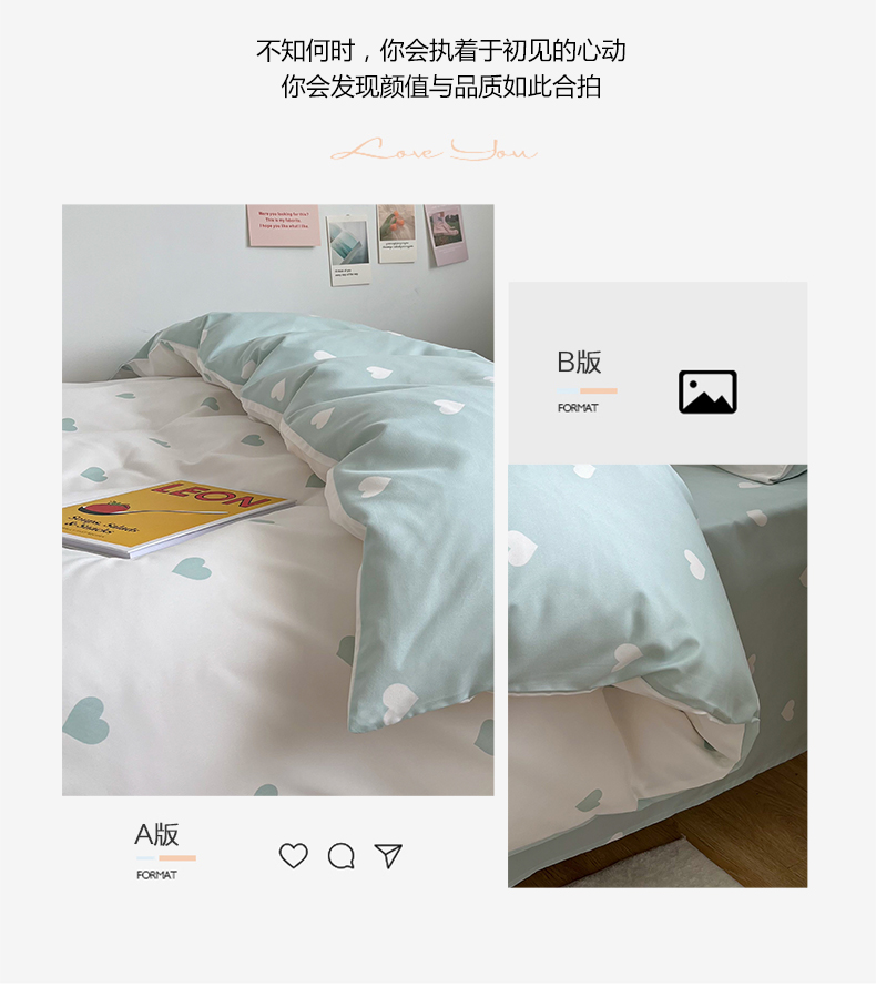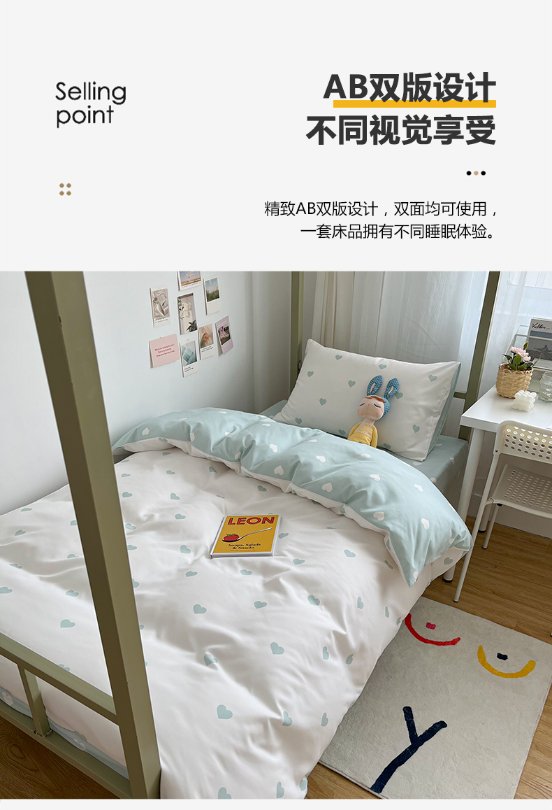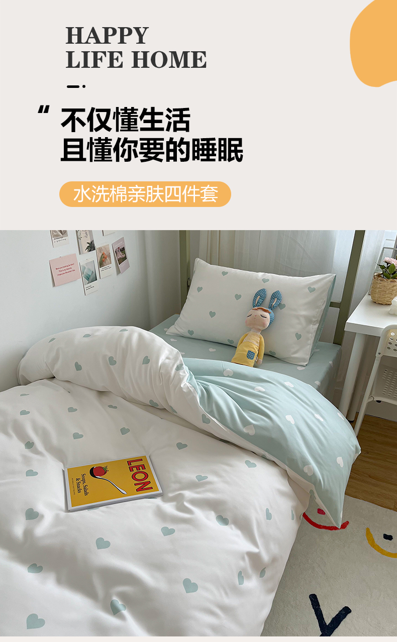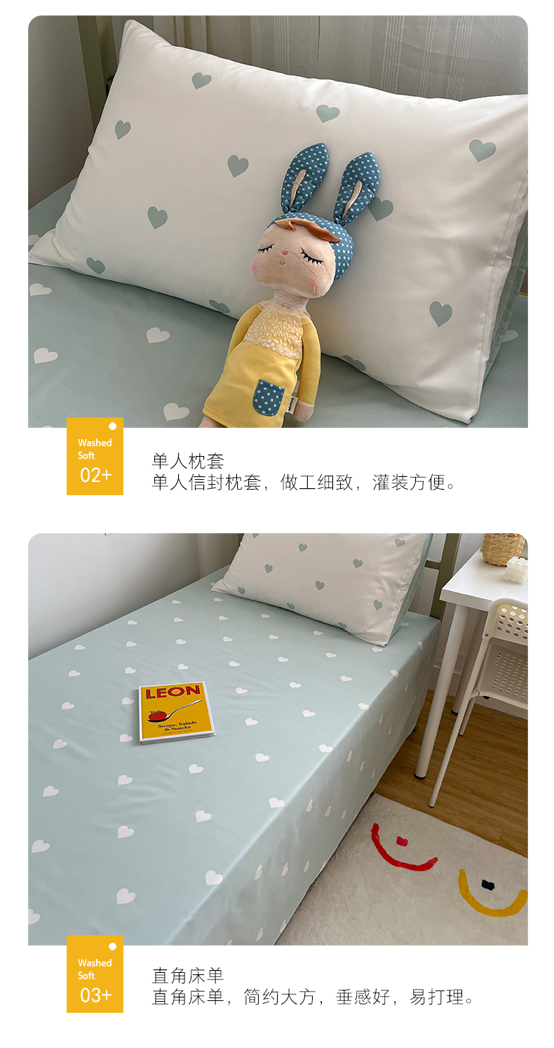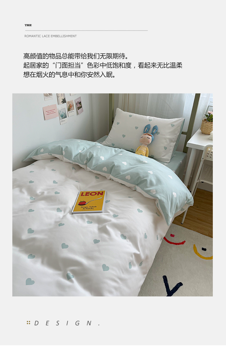 商品名称:悦织湾家纺 2025新款水洗棉亲肤爱心款学生三件套印花轻奢时尚四件套 爱心-湖兰