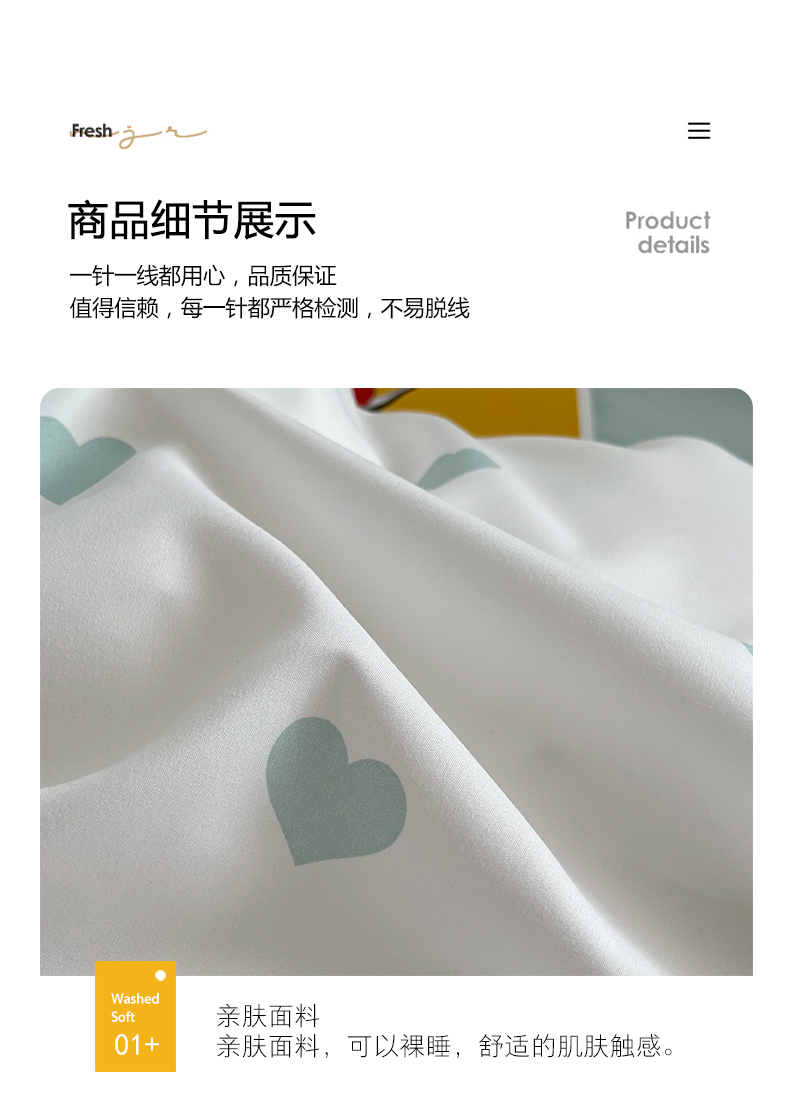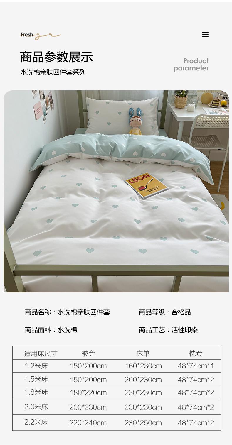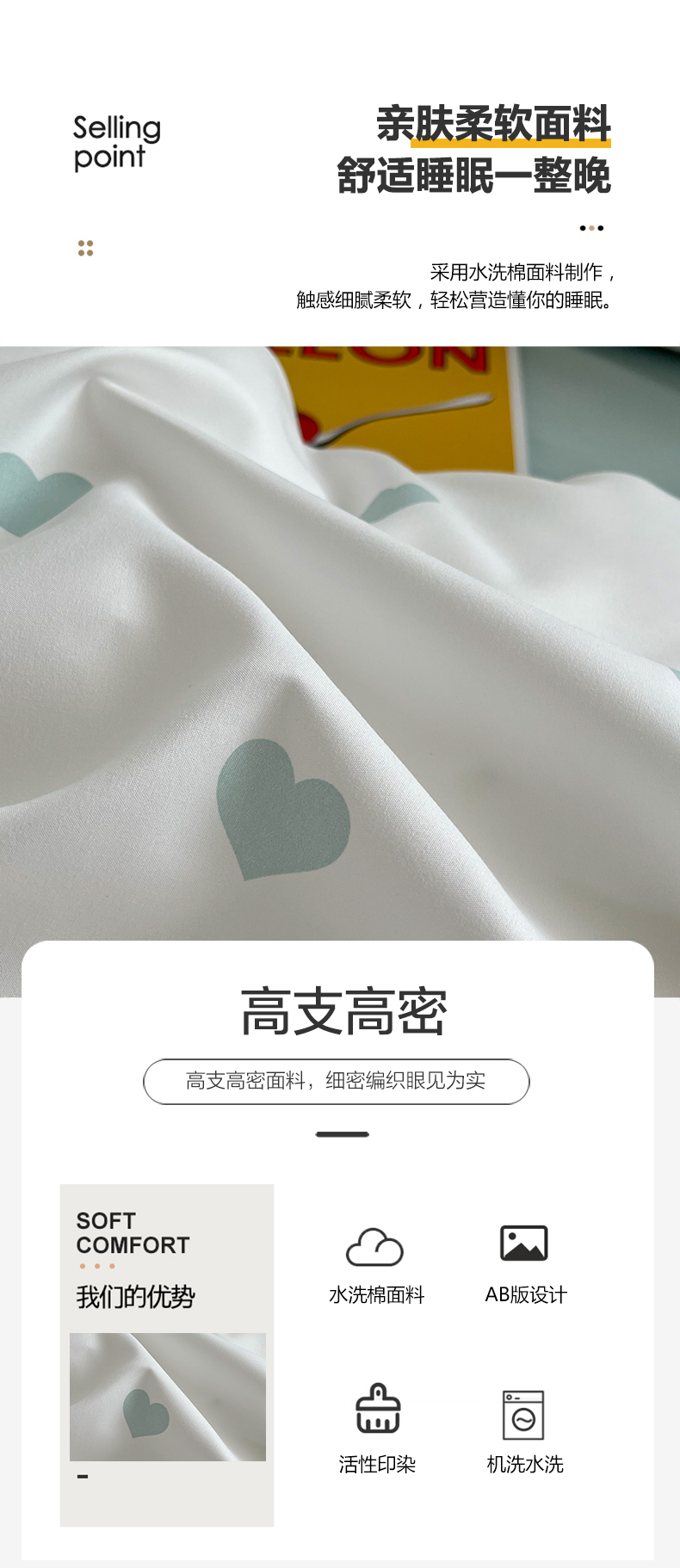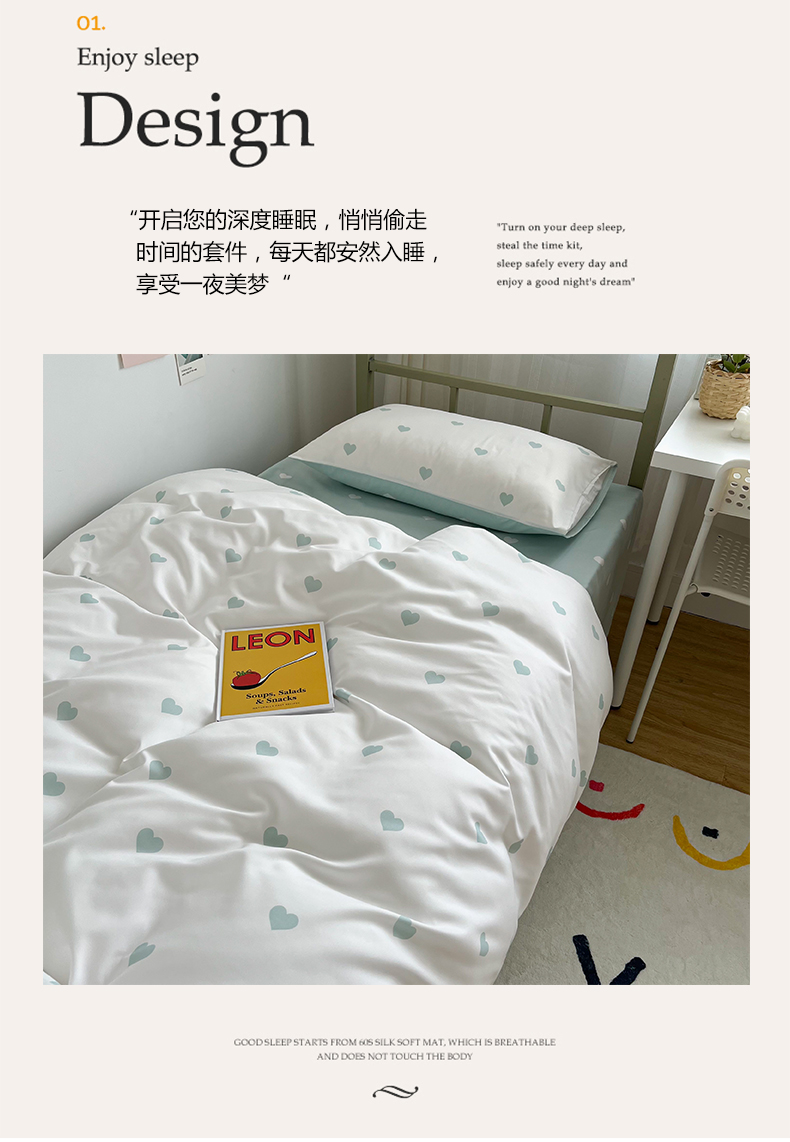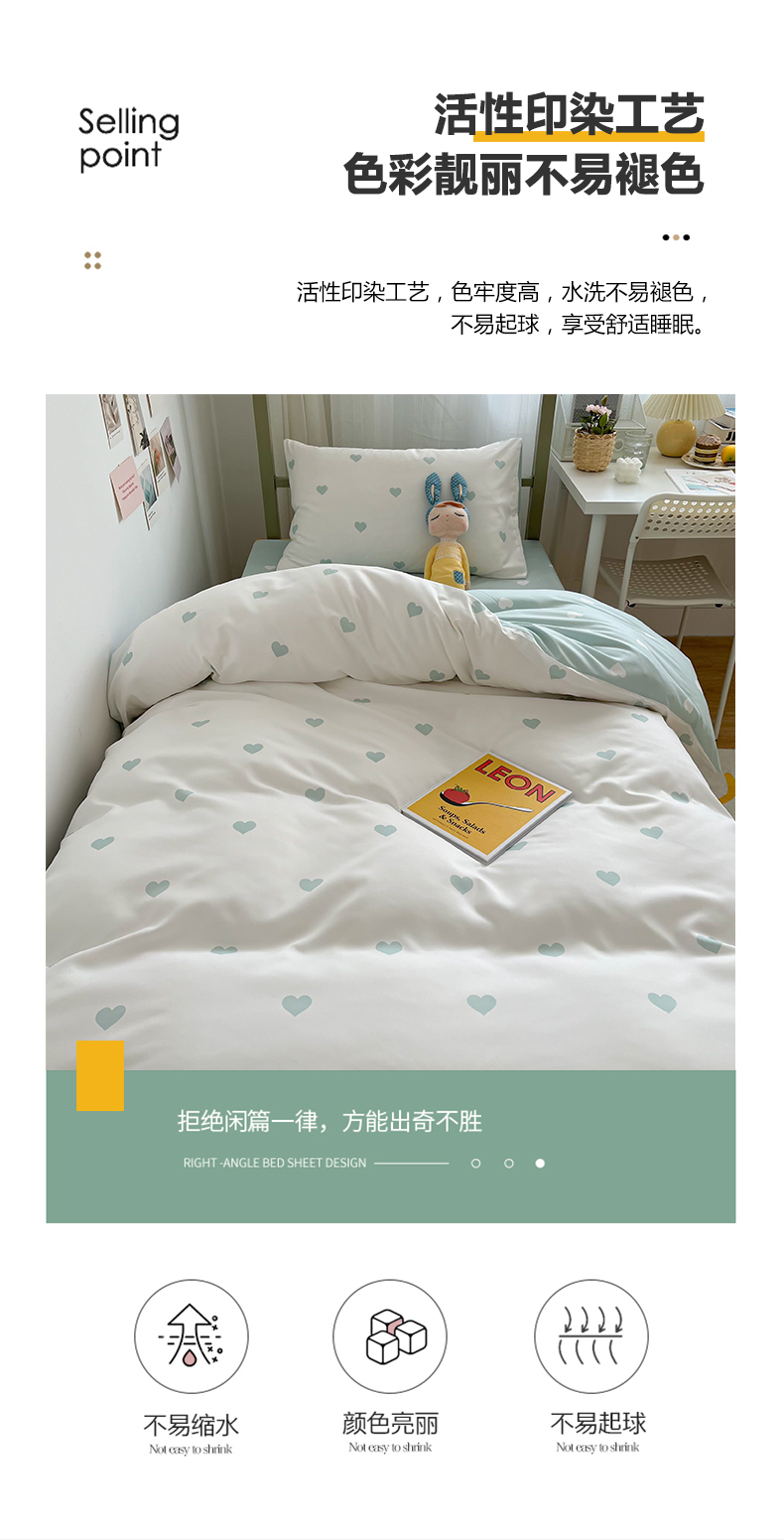 商品名称:悦织湾家纺 2025新款水洗棉亲肤爱心款学生三件套印花轻奢时尚四件套 爱心-湖兰
