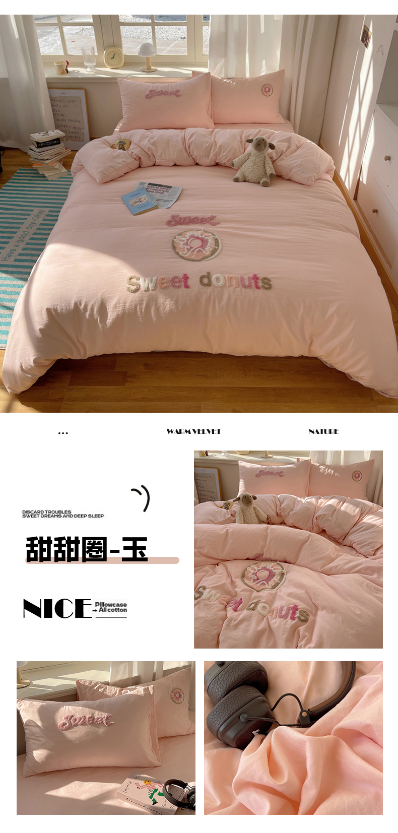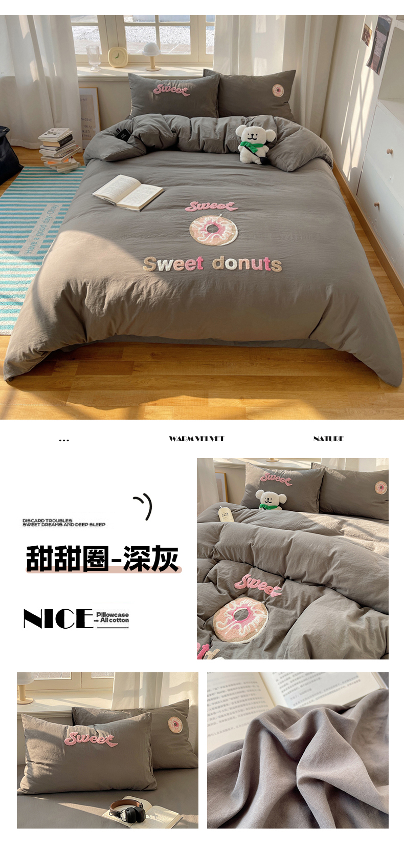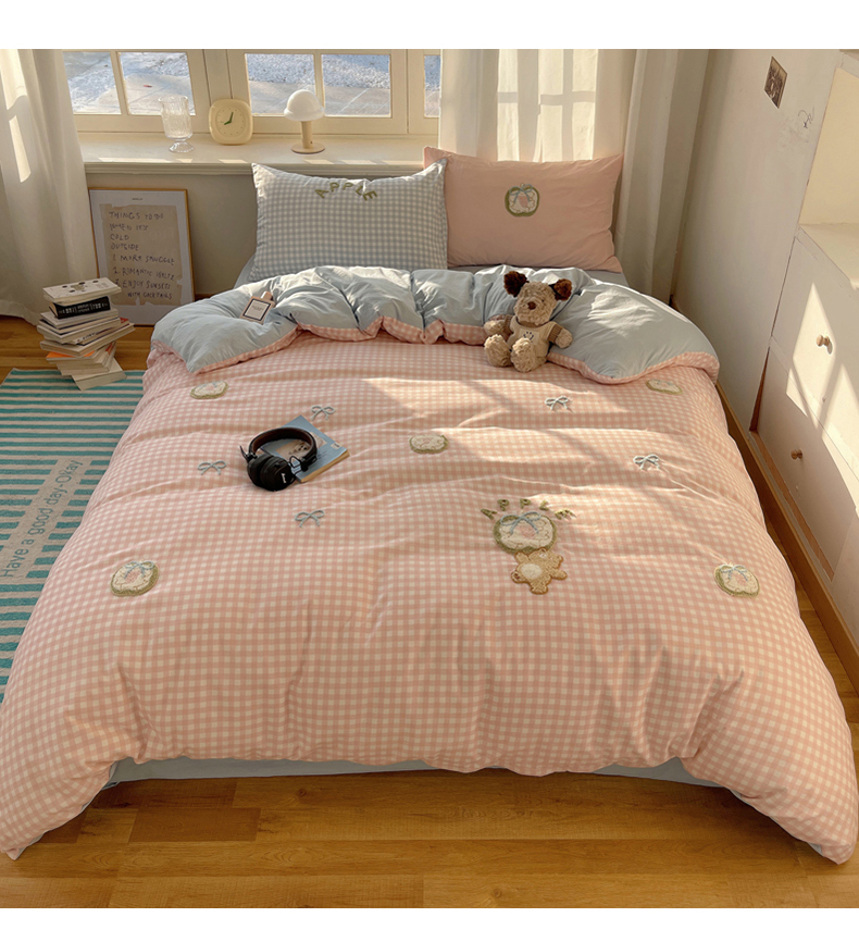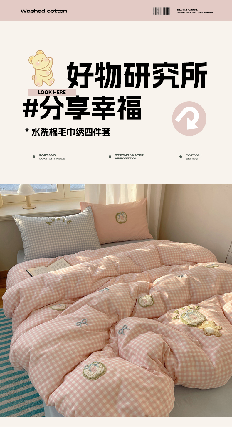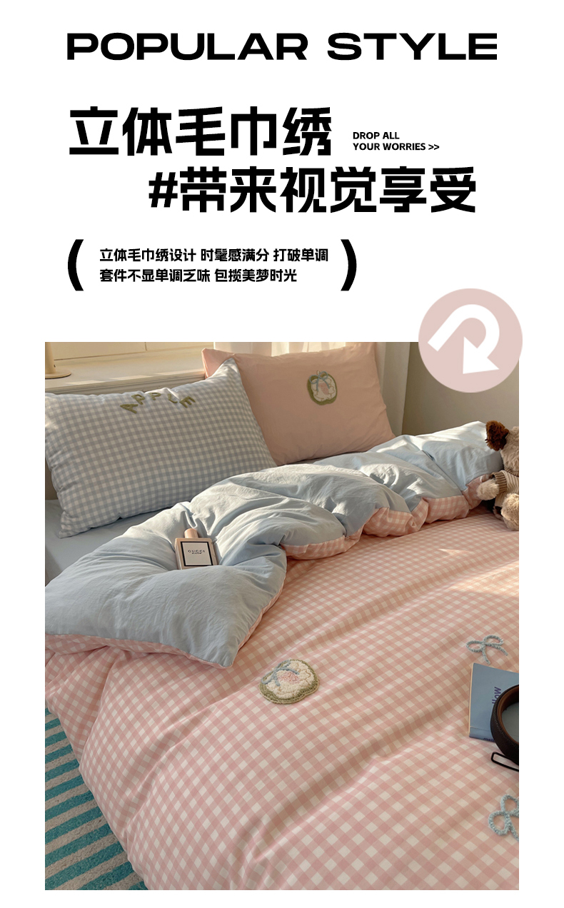 (总)阿曼达 2025新款爆款超甜可爱酷美毛巾绣软糯糯可以裸睡的水洗m纯色格子双拼四件套