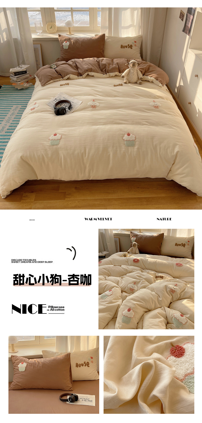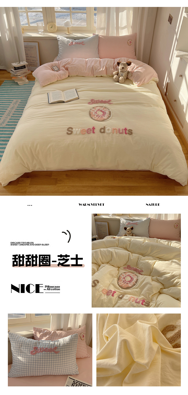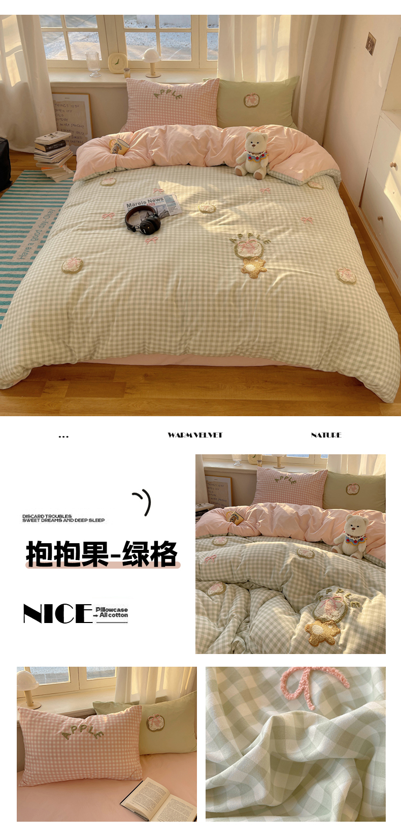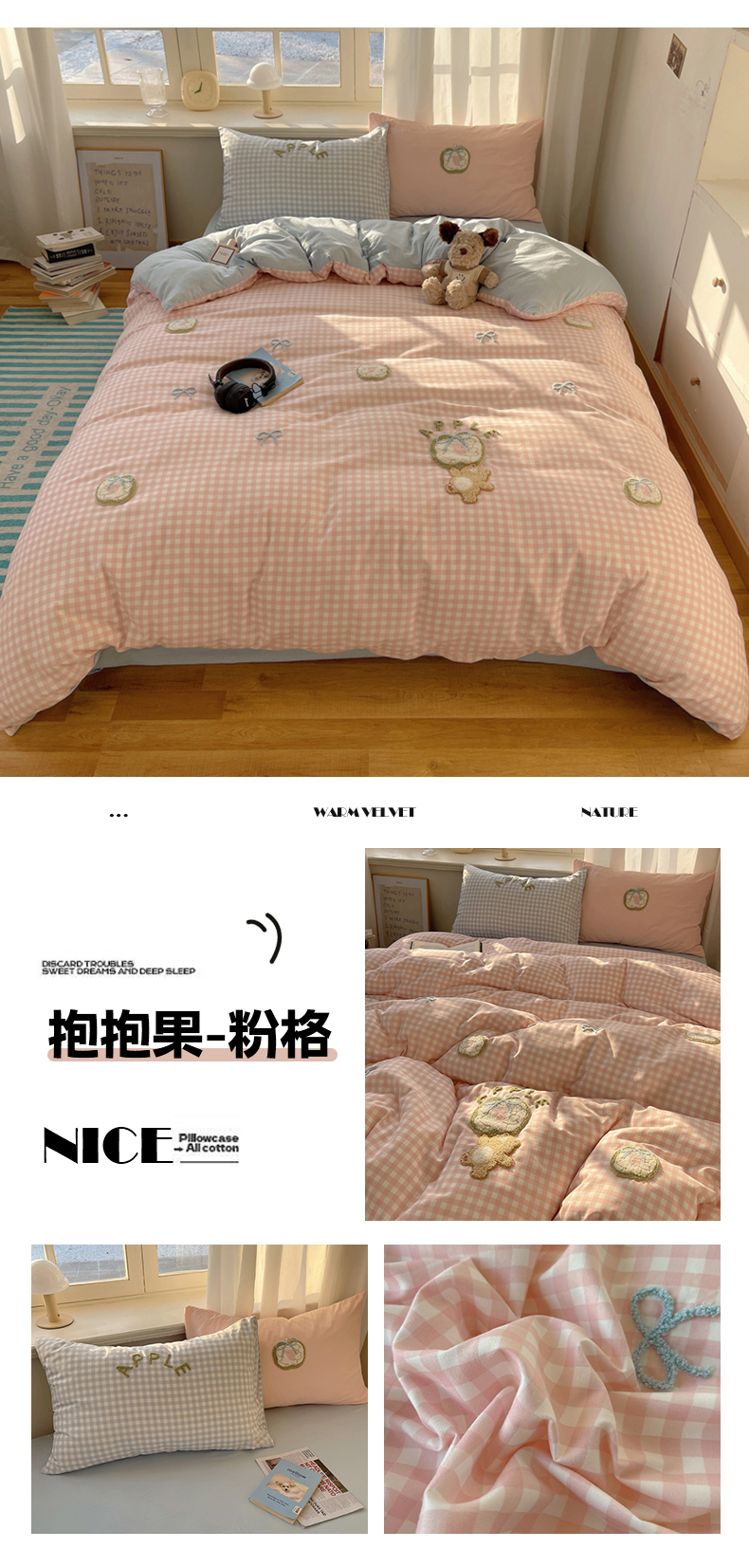 商品名称:(总)阿曼达 2025新款爆款超甜可爱酷美毛巾绣软糯糯可以裸睡的水洗m纯色格子双拼四件套