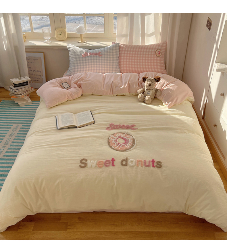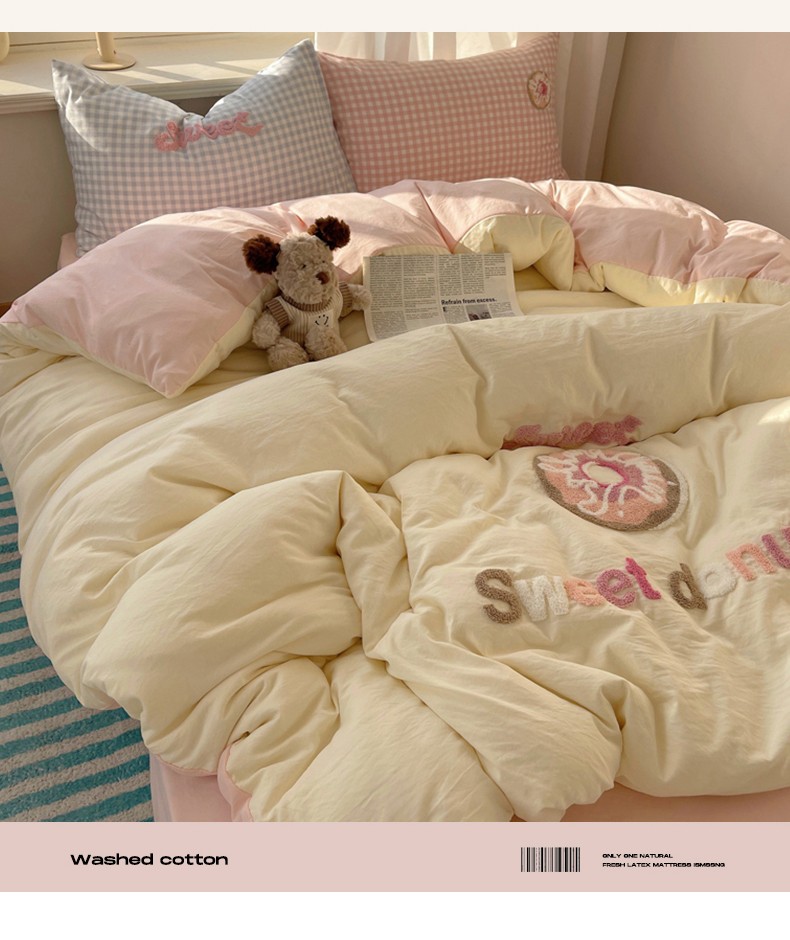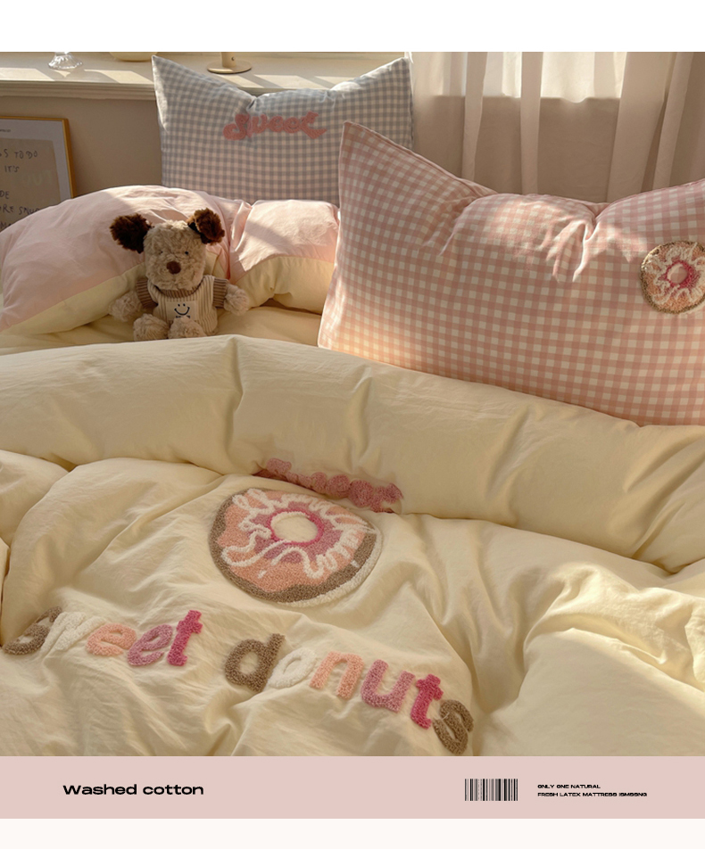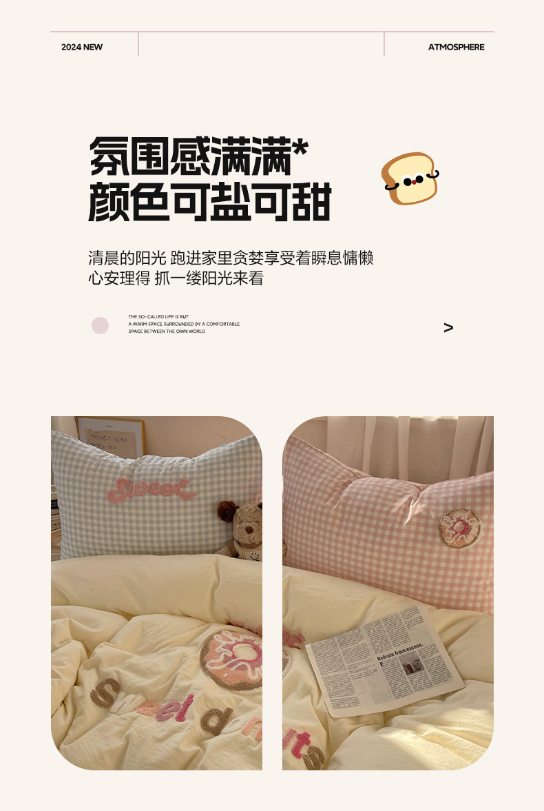 当前位置: 91家纺网 > 商品网购 > 床品套件 > 四件套 > 水洗棉四件套 > 阿曼达 2025新款爆款超甜可爱酷美毛巾绣软糯糯可以裸睡的水洗m纯色格子双拼四件套 甜甜圈-芝士