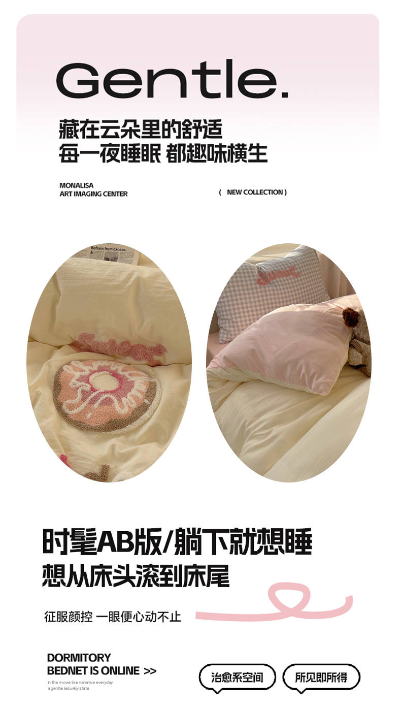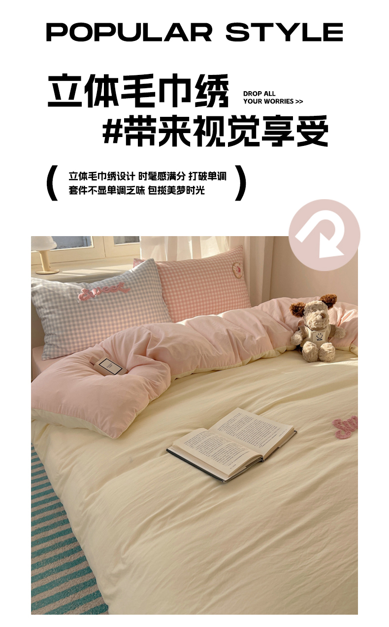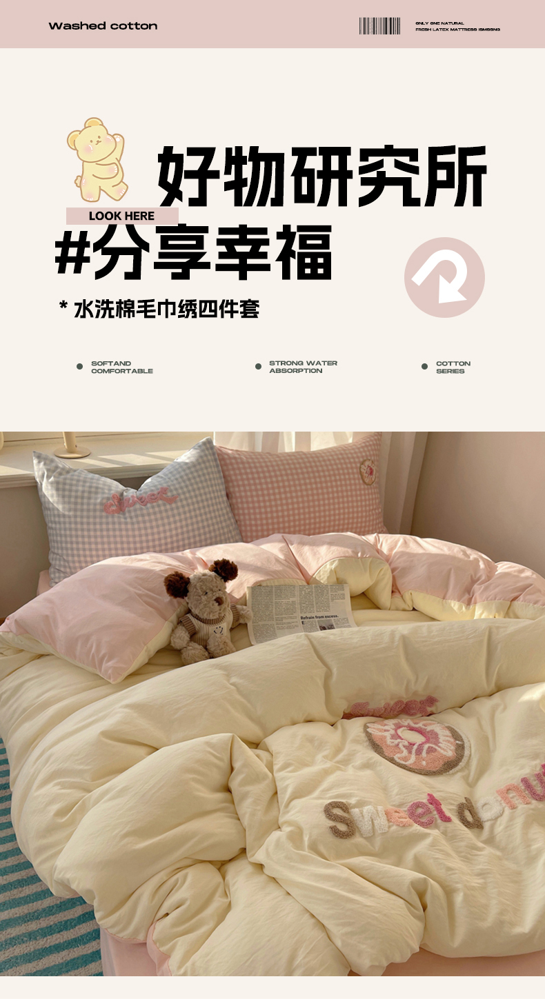 当前位置: 91家纺网 > 商品网购 > 床品套件 > 四件套 > 水洗棉四件套 > 阿曼达 2025新款爆款超甜可爱酷美毛巾绣软糯糯可以裸睡的水洗m纯色格子双拼四件套 甜甜圈-芝士