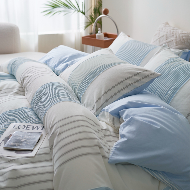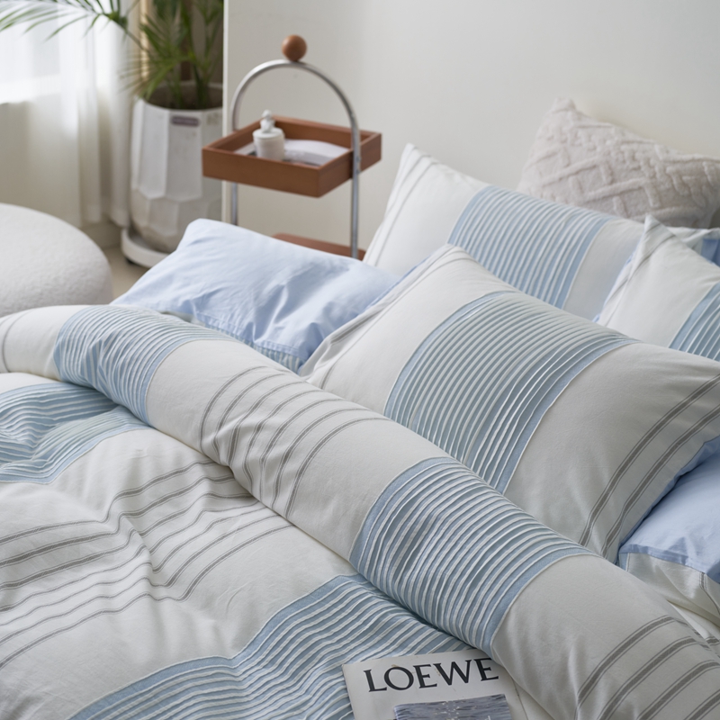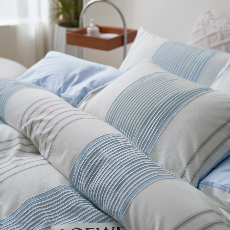 当前位置: 91家纺网 > 商品网购 > 床品套件 > 四件套 > 全棉普通四件套 > 金丝鸟家纺 2025新款全棉三层纱提花系列四件套 晴岚天蓝