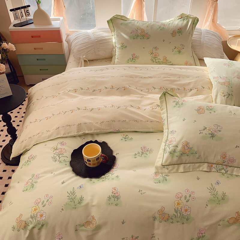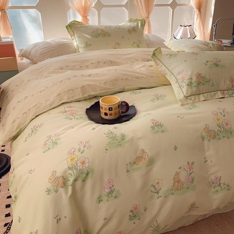 2025新款亲肤舒适小清新全棉四件套 花小兔