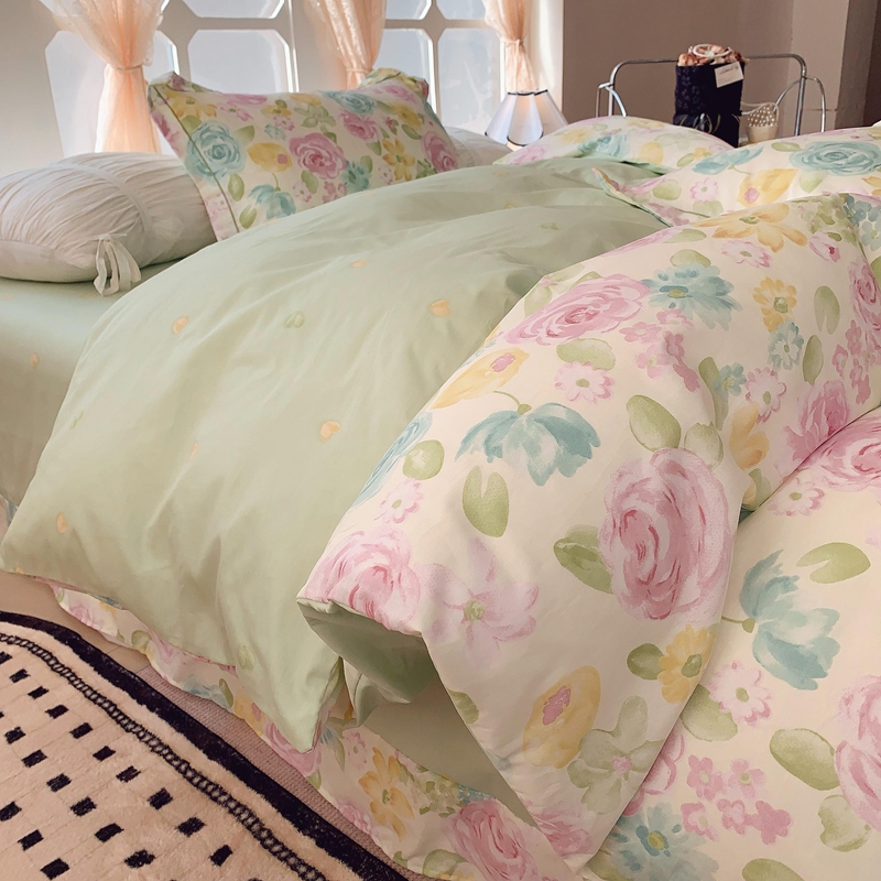 商品名称:2025新款亲肤舒适小清新全棉四件套 油画玫瑰