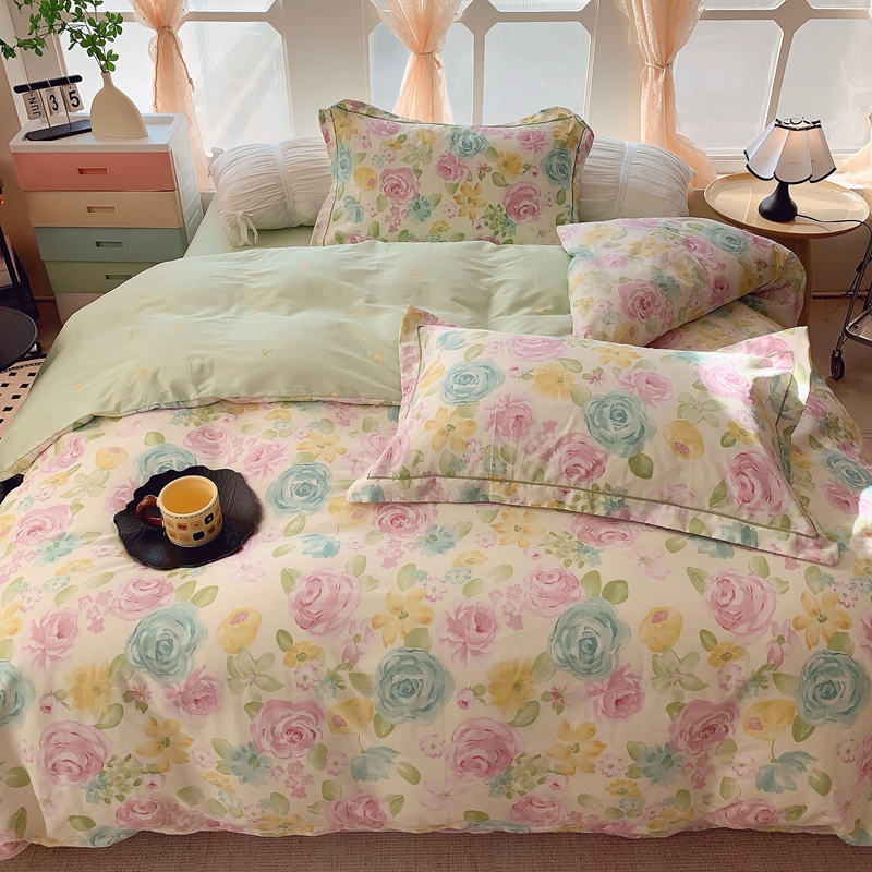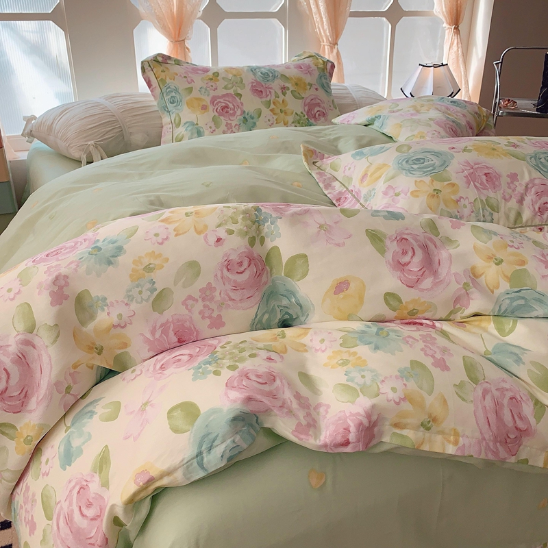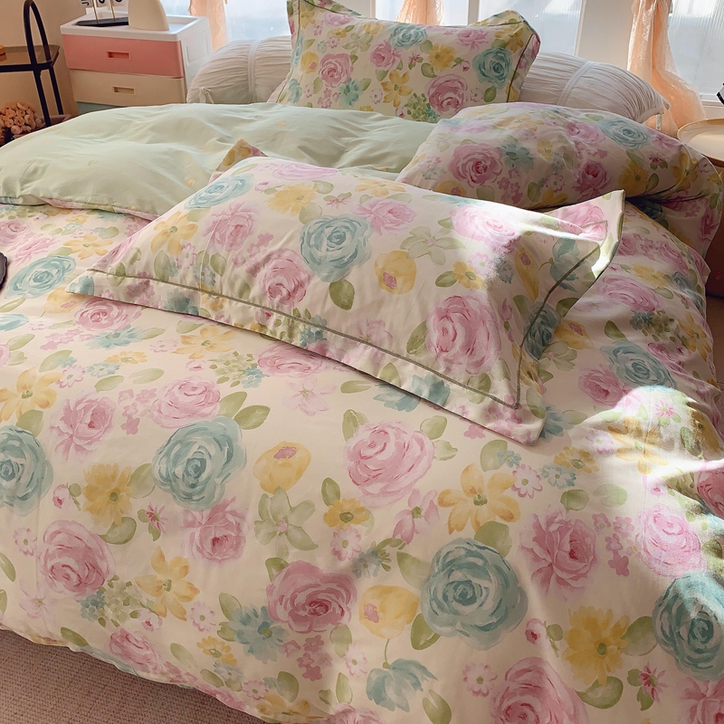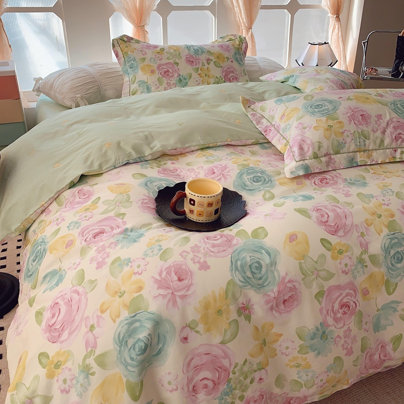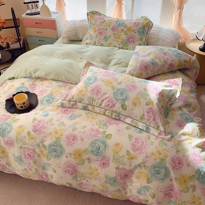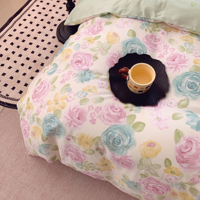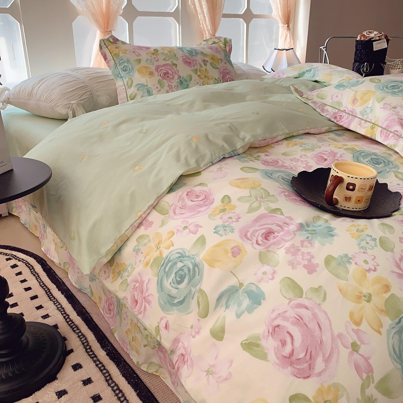 2025新款亲肤舒适小清新全棉四件套 油画玫瑰