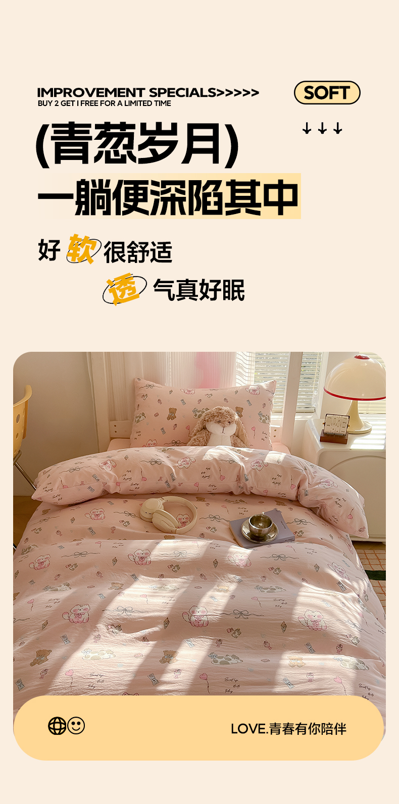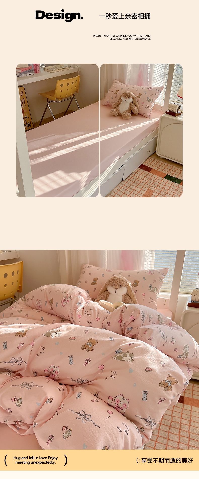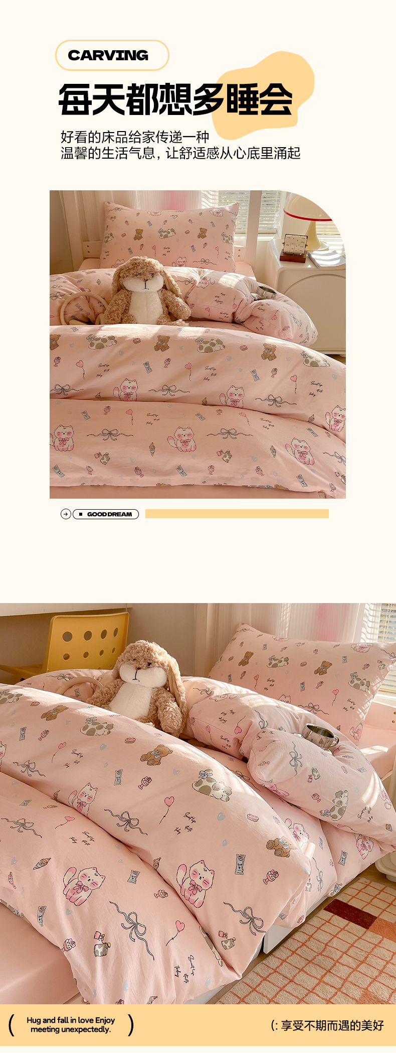 当前位置: 91家纺网 > 商品网购 > 床品套件 > 四件套 > 其它四件套 > 韩巢家纺 2025新款超柔水洗棉学生宿舍寝室被套床单三件套 小猫线球