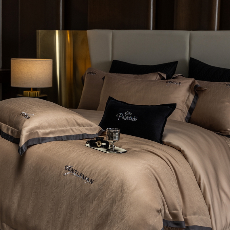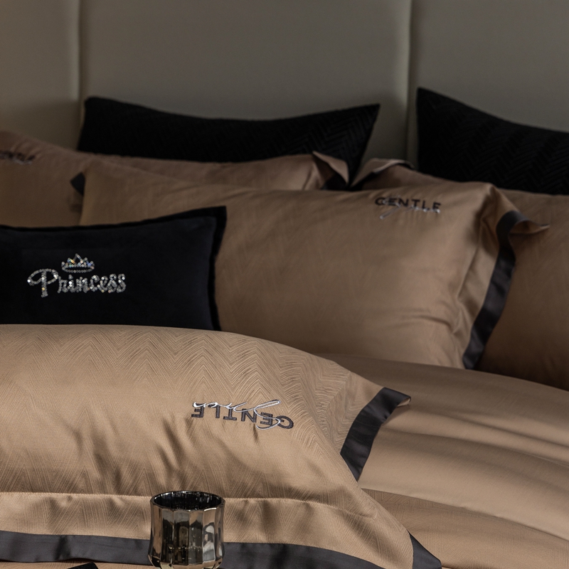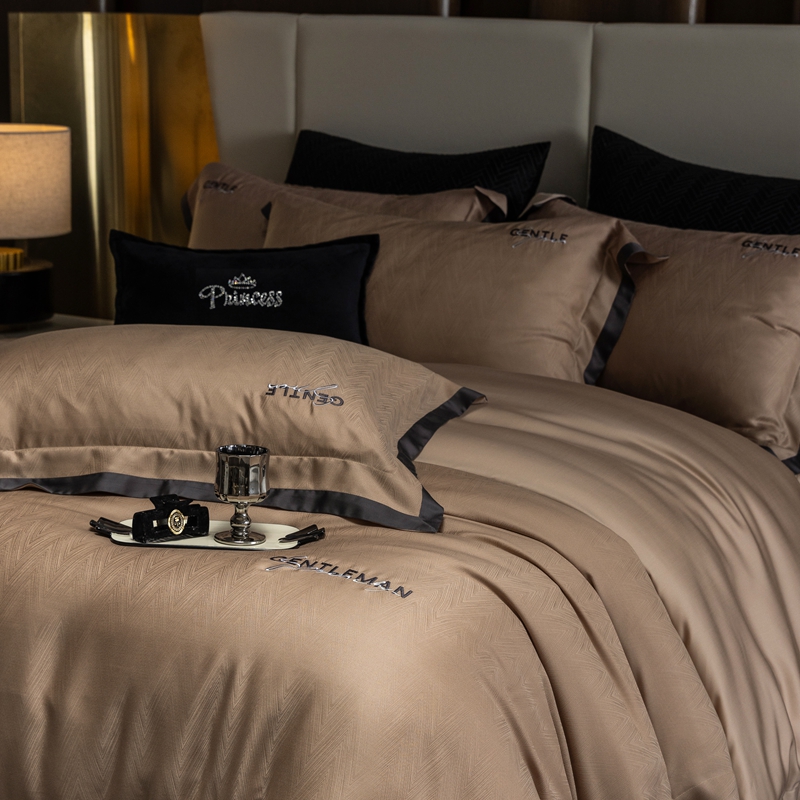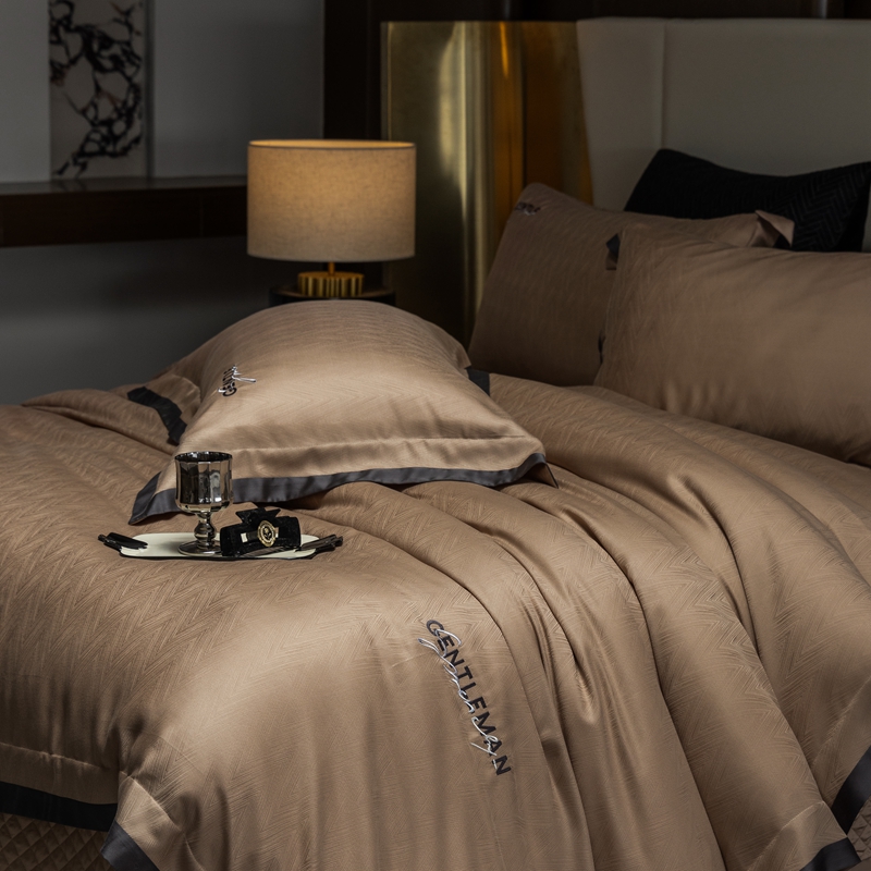 商品名称:2025新款天丝提花-晓雅系列-(被套四件套-床盖款) 晓雅 咖