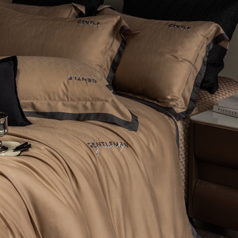 2025新款天丝提花-晓雅系列-(被套四件套-床盖款) 晓雅 咖