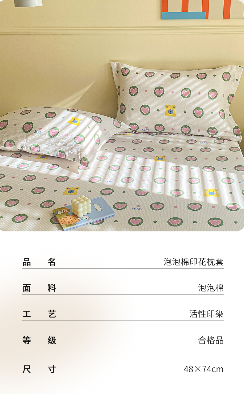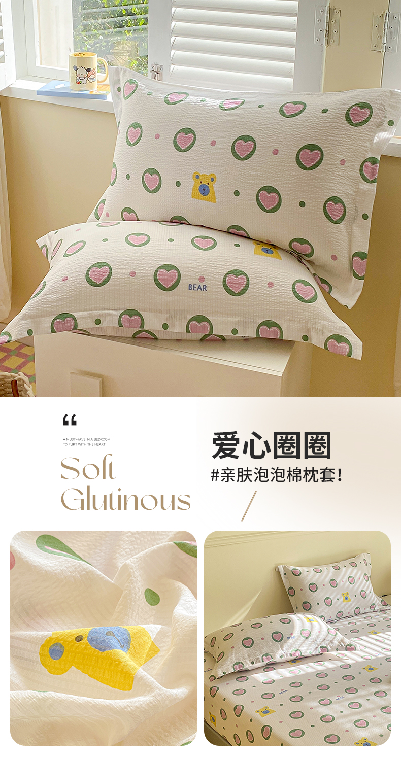 商品名称:恬澳家纺 2025新款泡泡棉印花枕套 爱心圈圈