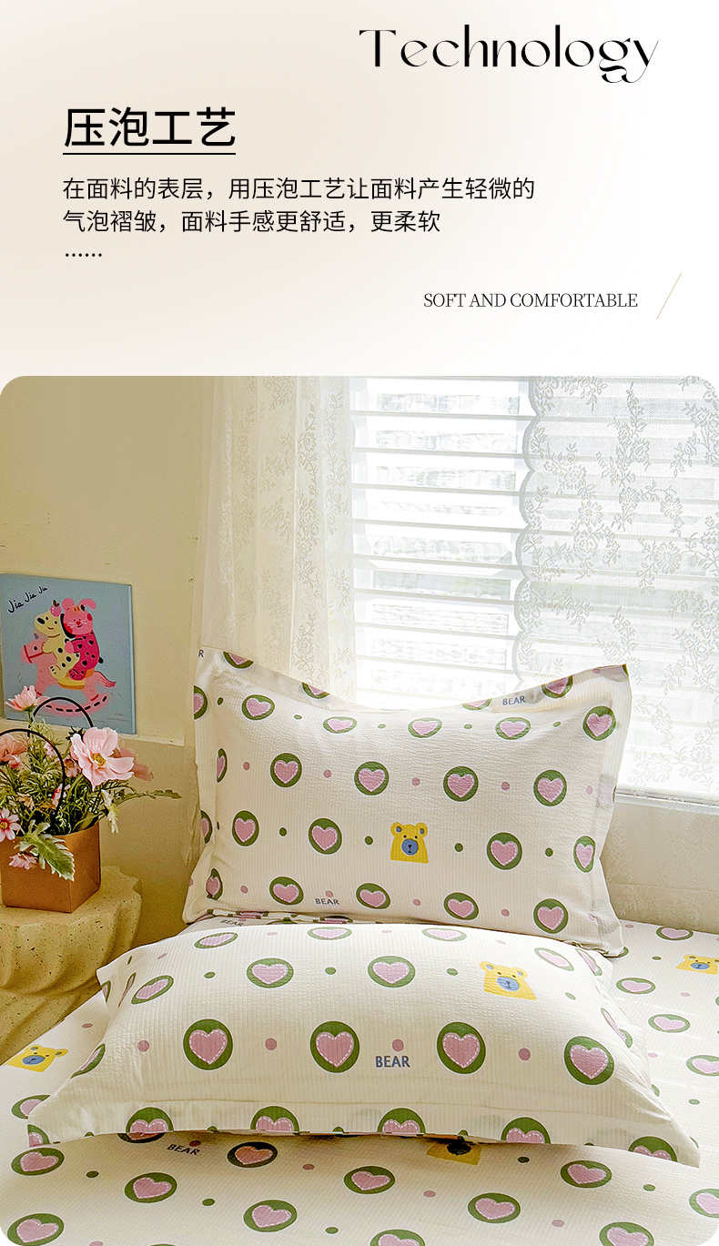 恬澳家纺 2025新款泡泡棉印花枕套 爱心圈圈