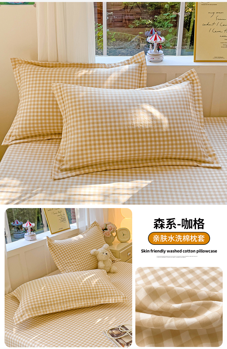 恬澳家纺 2025新款水洗棉森系枕套 森系-咖格