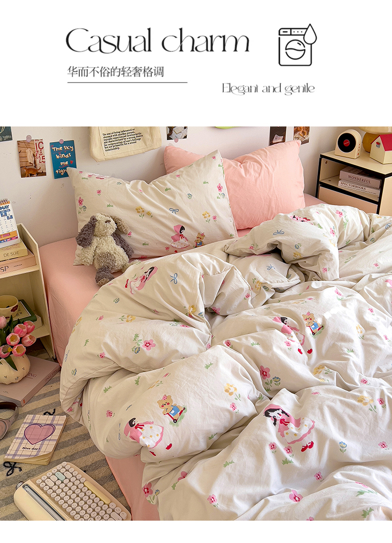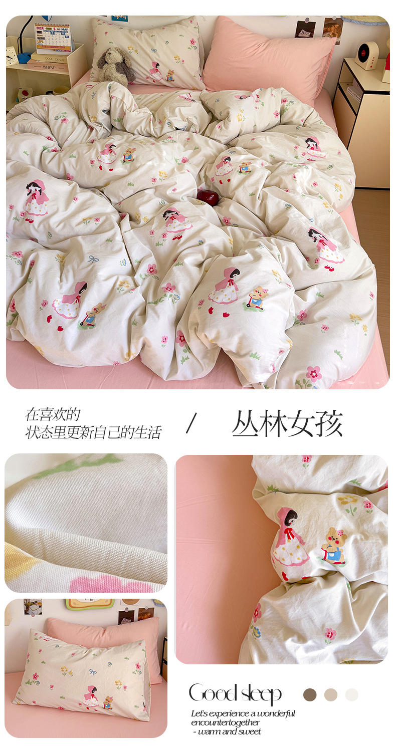 当前位置: 91家纺网 > 商品网购 > 床品套件 > 四件套 > 水洗棉四件套 > 水墨江南 2025新款超柔水洗棉系列四件套 丛林女孩