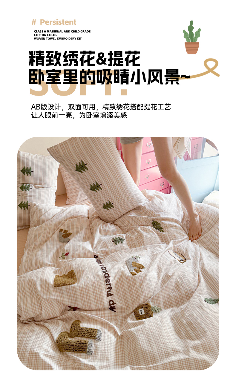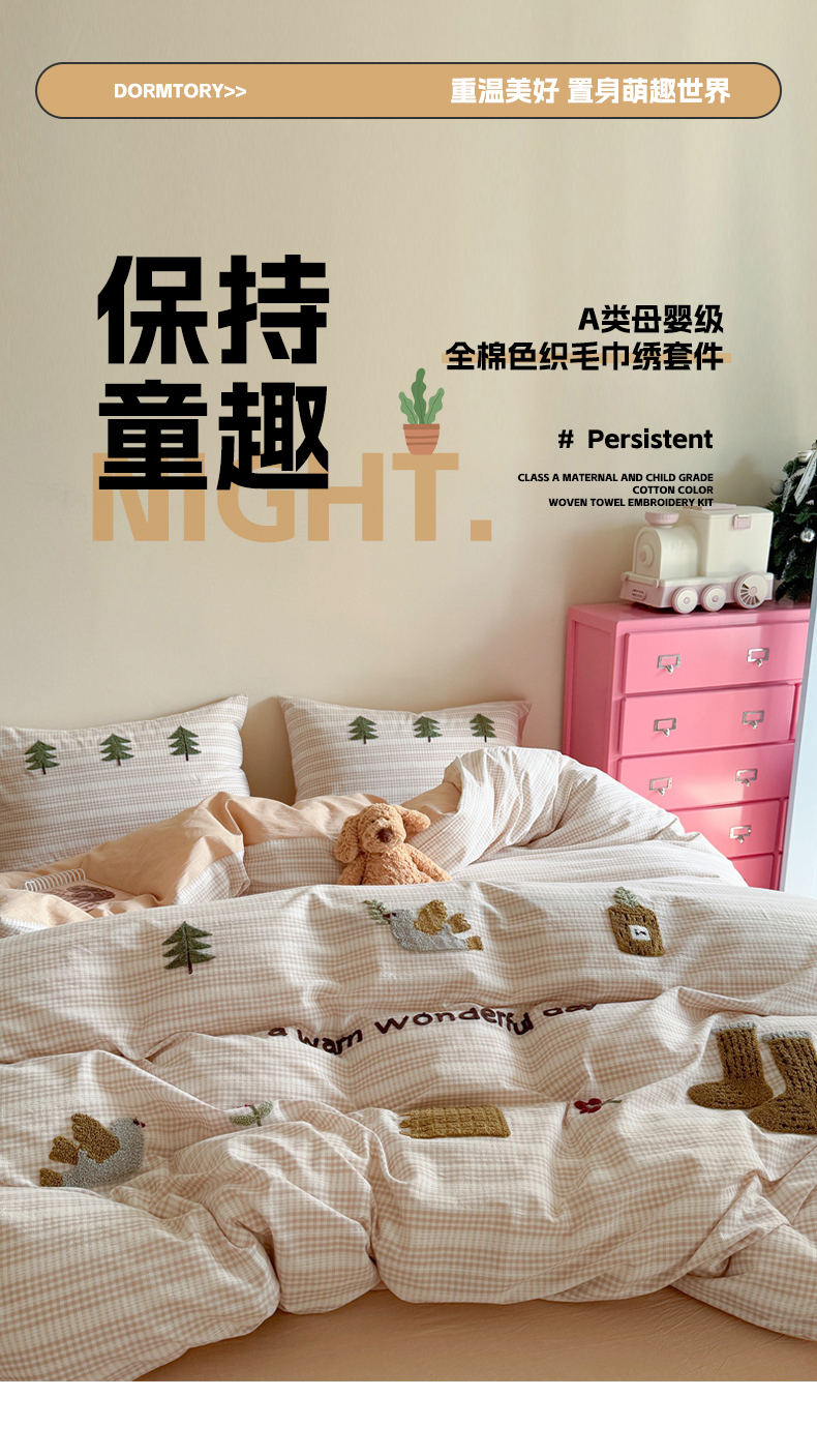商品名称:2025新款全棉色织提花毛巾绣四件套 烘焙女孩