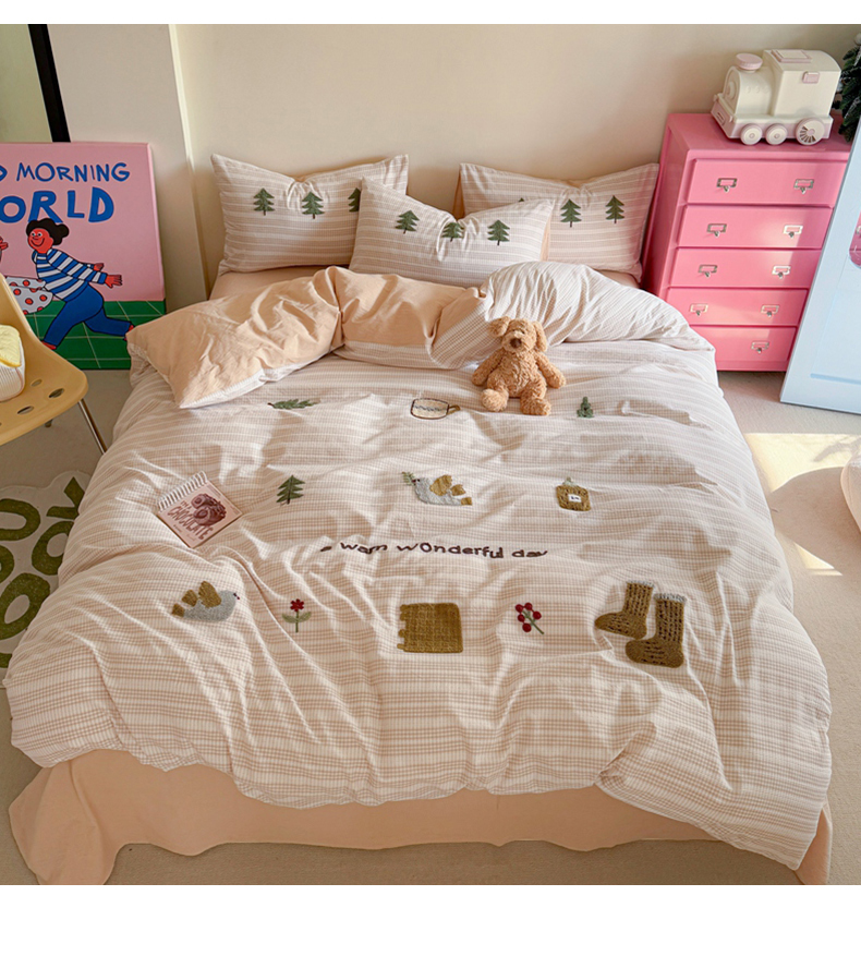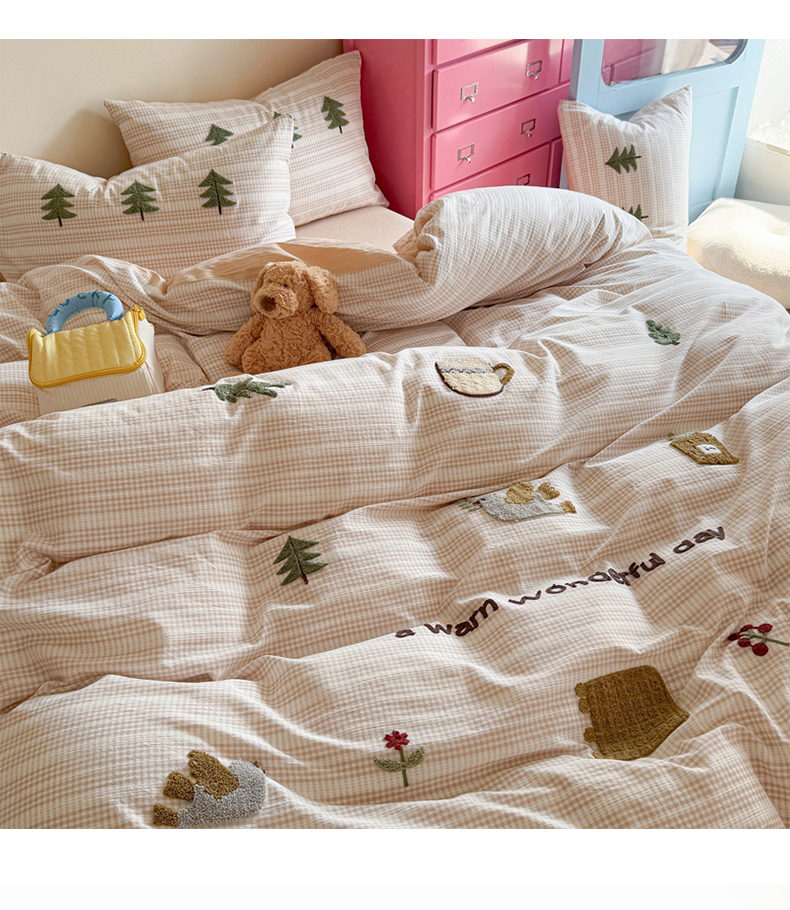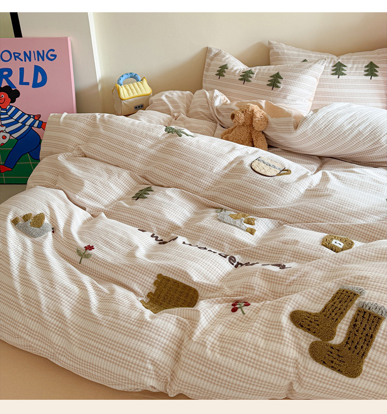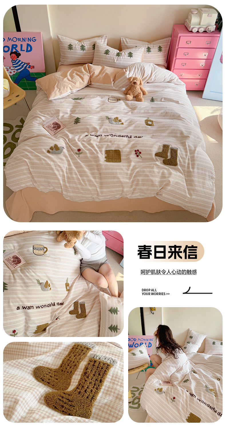 2025新款全棉色织提花毛巾绣四件套 烘焙女孩