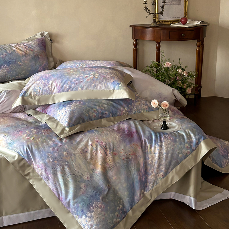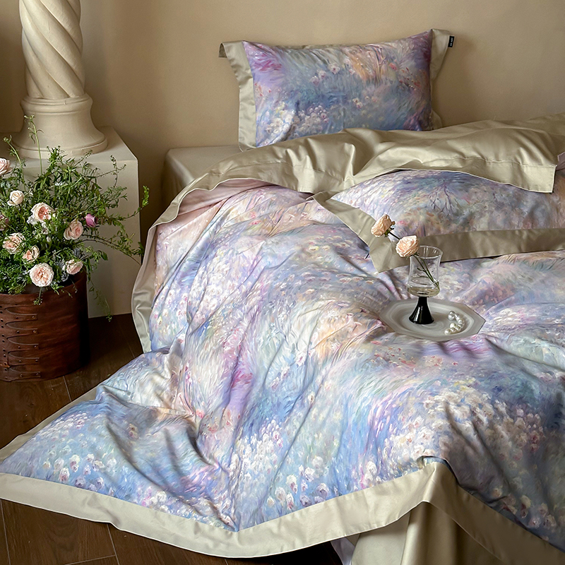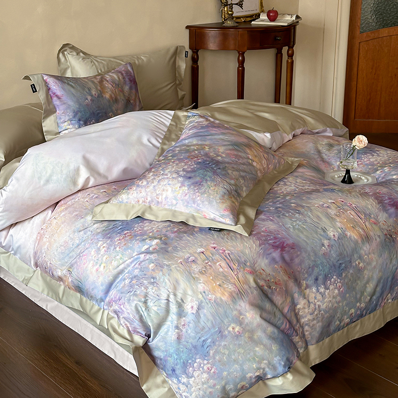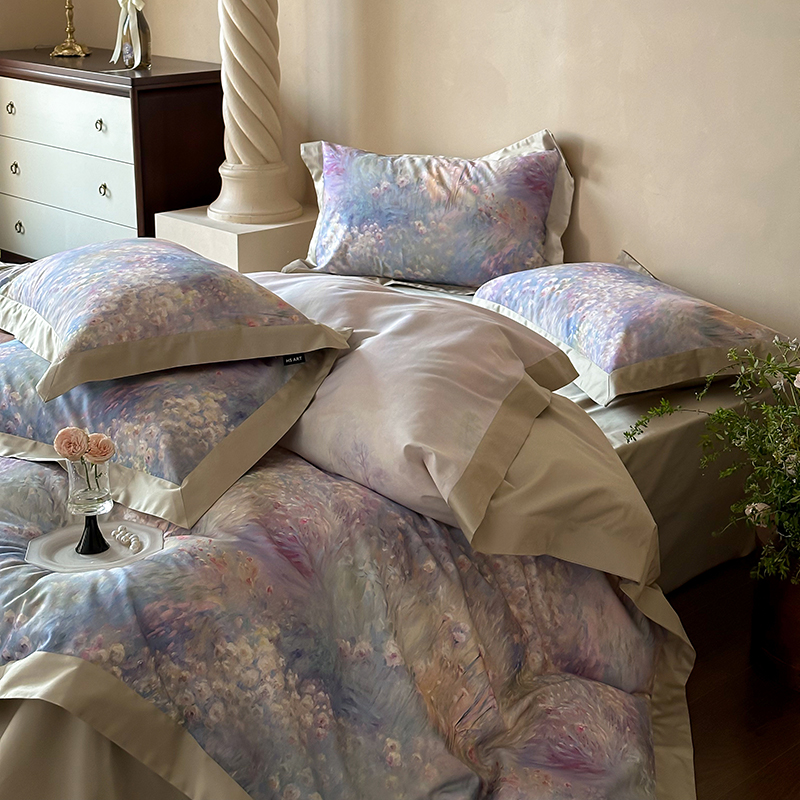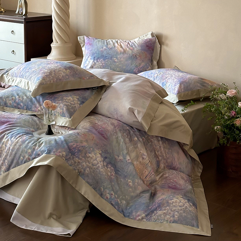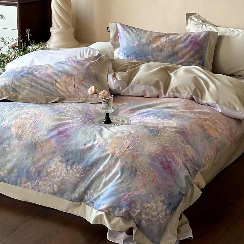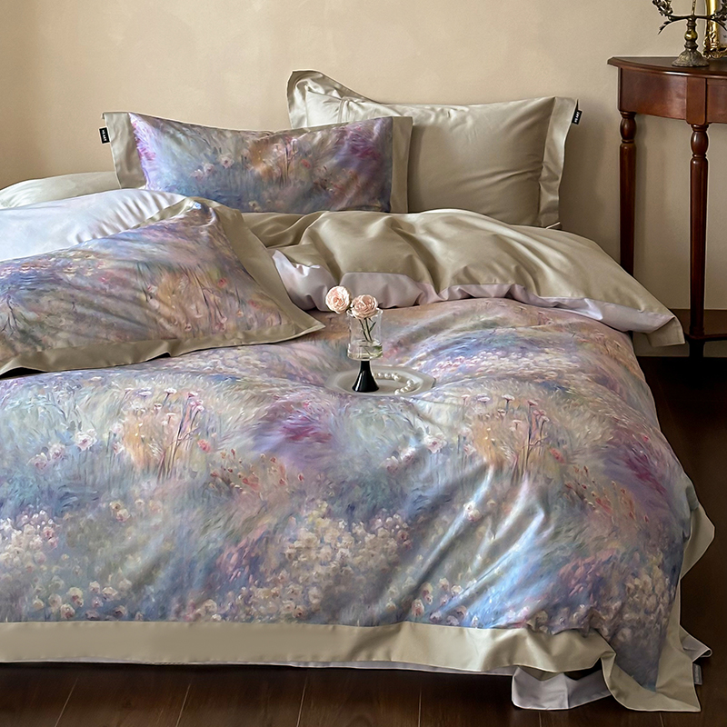 商品名称:禾时2025春夏新款全棉纯棉100S长绒棉数码印花四件套带精致礼盒包装 紫雾迷情