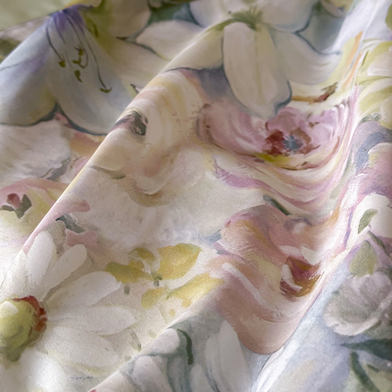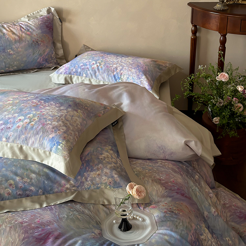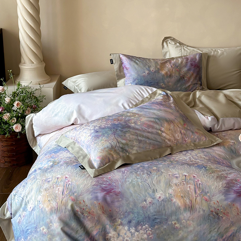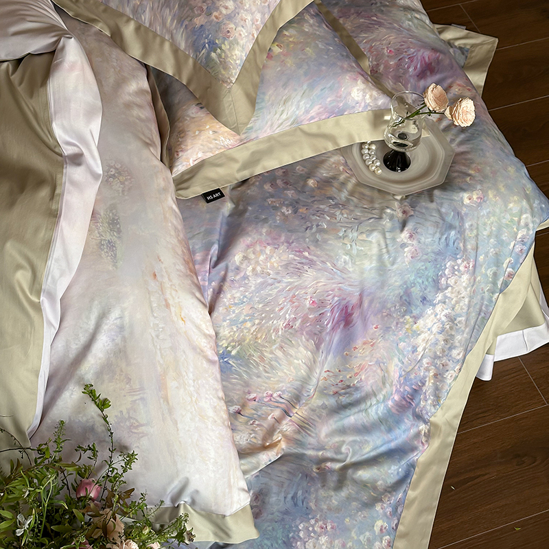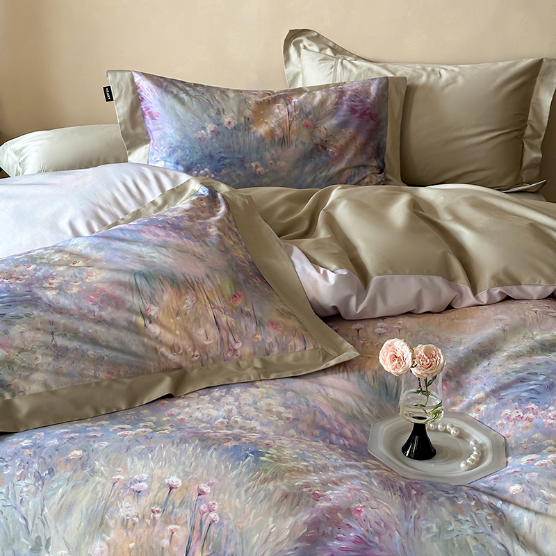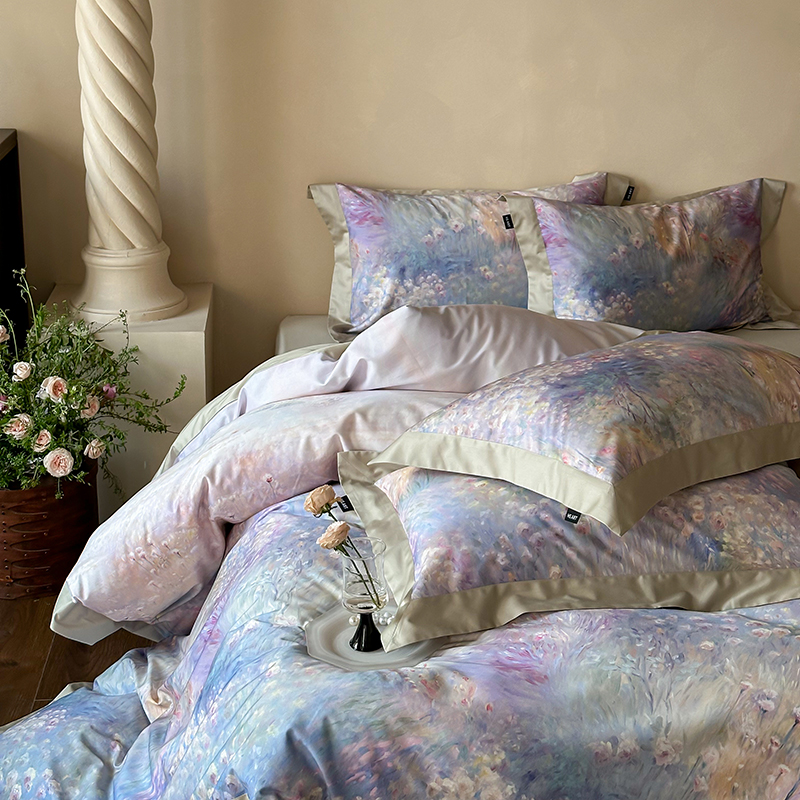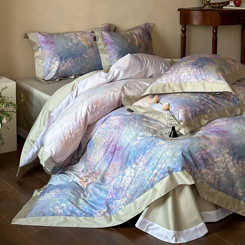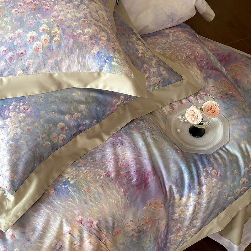 商品名称:禾时2025春夏新款全棉纯棉100S长绒棉数码印花四件套带精致礼盒包装 紫雾迷情