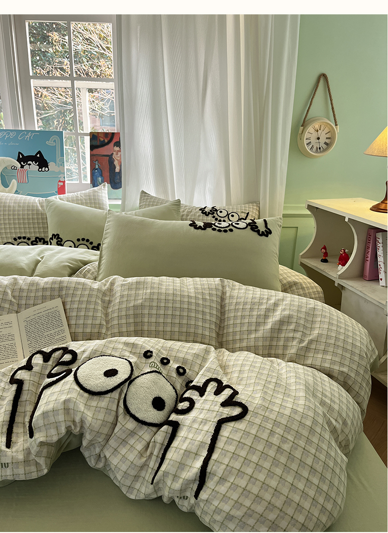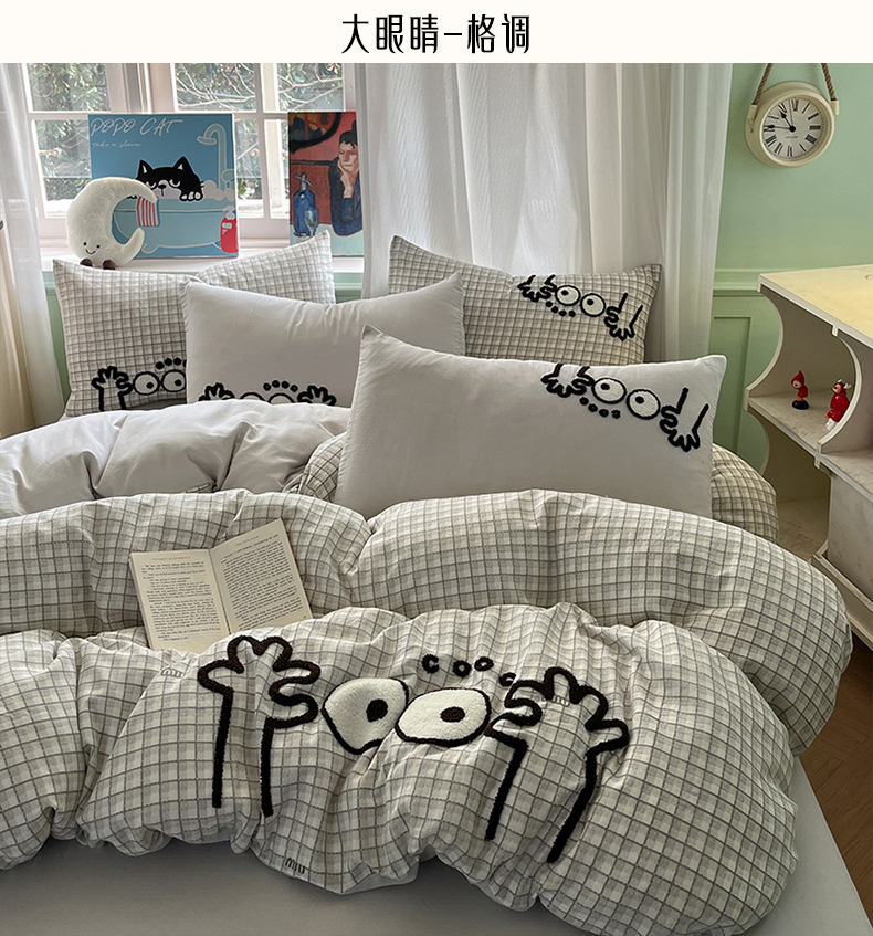 (总)羚羊语家纺 2025新款牛奶绒手作款樱桃女孩四件套毛巾绣刺绣花秋冬加厚法莱绒法兰绒珊瑚绒三件套(买家秀请联系客服!),手作女孩-奶油粉,毛巾绣-平古企鹅,手作女孩-柔雾紫,毛巾绣-自由大鹅,毛巾绣-腊肠狗,手作女孩-燕麦奶,手作女孩-清新绿